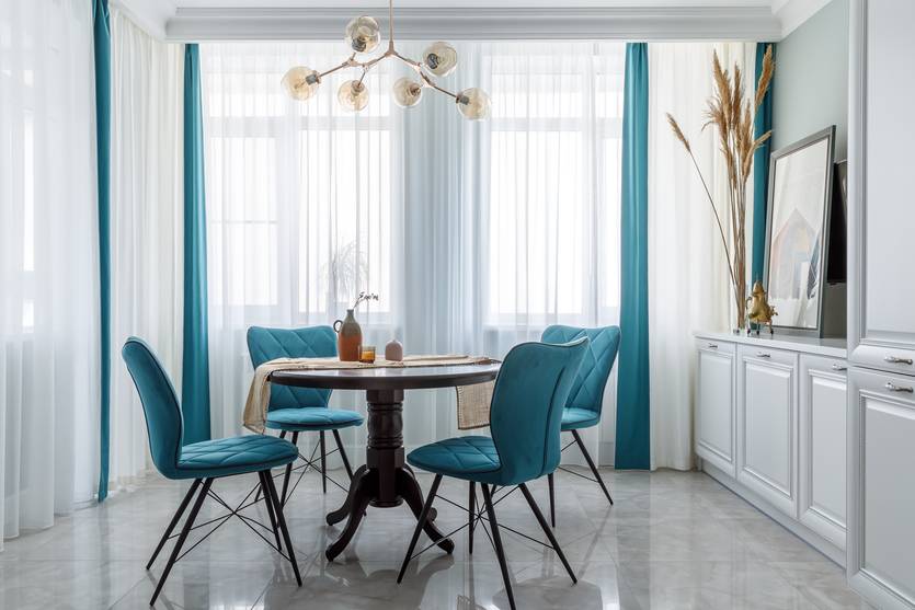 - в столовой предусмотрите люстру или подвесы над обеденным столом;