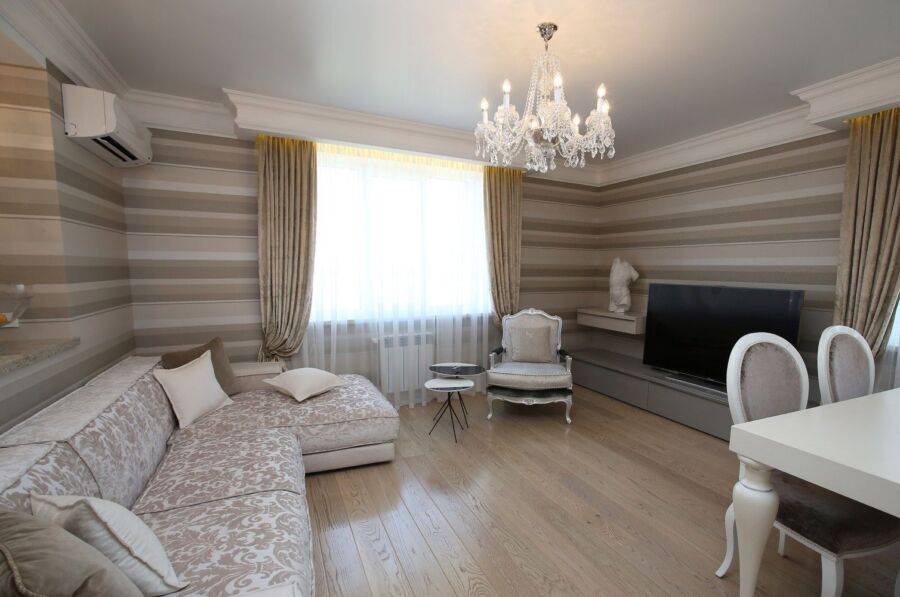 - молочный. Идеально подходит для помещений, расположенных на северной стороне. Позволяет создать элегантный зал для приема гостей и проведения досуга.