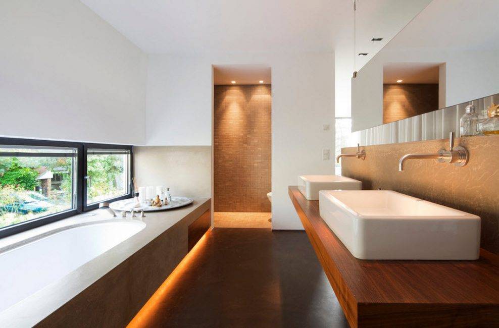 Хотя дизайнеры советуют устанавливать подвесную сантехнику с овальными формами, это касается раковины, унитаза, а также беде. Все возможные трубы должны быть скрыты
