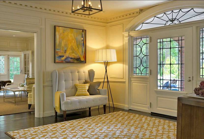 У помещения, расположенного при входе в дом, есть и менее благородное название: прихожая. Но функции холла выходят далеко за рамки хранения обуви и верхней одежды. Если правильно выполнить его дизайн в частном доме или квартире, он сможет стать местом для приема посетителей — курьеров, почтальонов и других гостей, которых не планируется приглашать в другие помещения дома. Кроме того, передняя комната, если она довольно просторная, легко может сочетать в себе функции библиотеки или кабинета, а также вместить лестницу на второй этаж. В загородном доме прихожую можно сочетать с выходом на террасу и французскими распашными окнами, позволяющими полностью менять планировку в теплое время года.