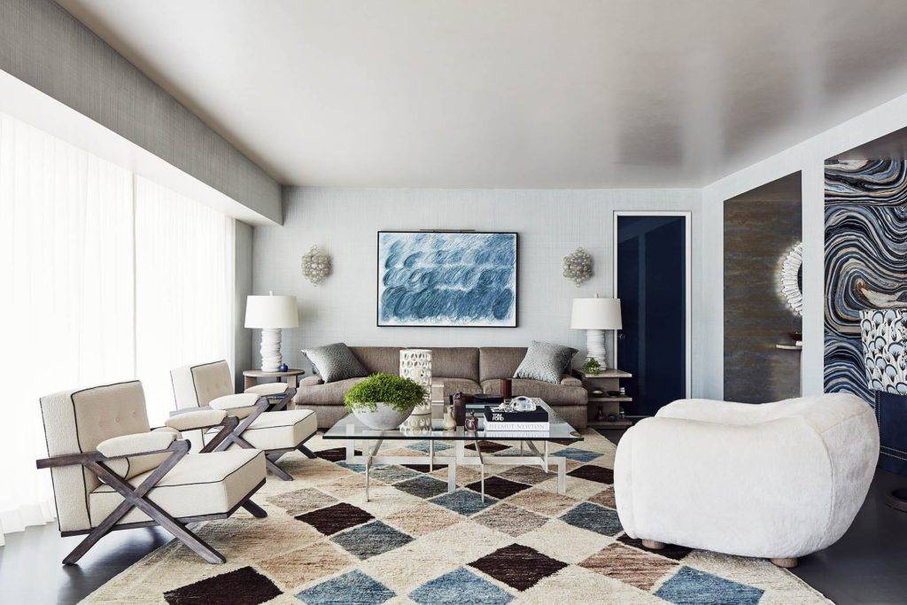 В 2020 году было модным зонировать пространство используя стеллажи и диваны. Сейчас эту идею лучше отложить до новых времен, так как метод забирает пространство, которого и так порой не хватает. В качестве альтернативы в дизайне гостиной можно использовать слоение двух материалов. Это обеспечивает дополнительный уровень комфорта под ногами, одновременно очерчивает границы определенных зон и добавляет больше уюта.