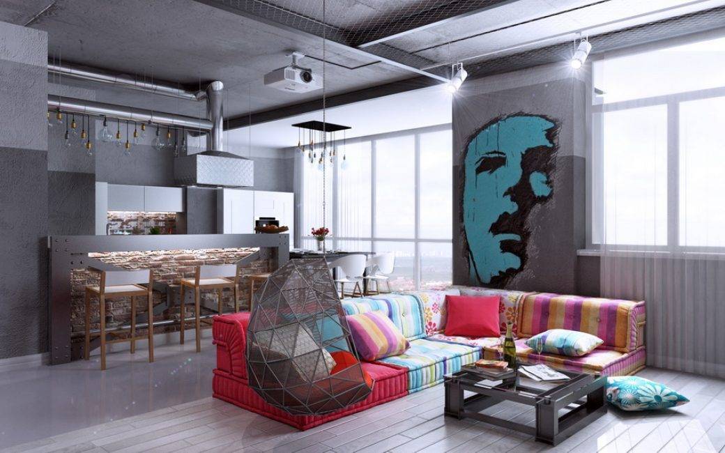- Огромное, ничем не ограниченное помещение с высокими потолками – об этой особенности стоит помнить изначально. И если в вашем жилье низкие потолки, то данный стиль дизайна вам не подойдет.