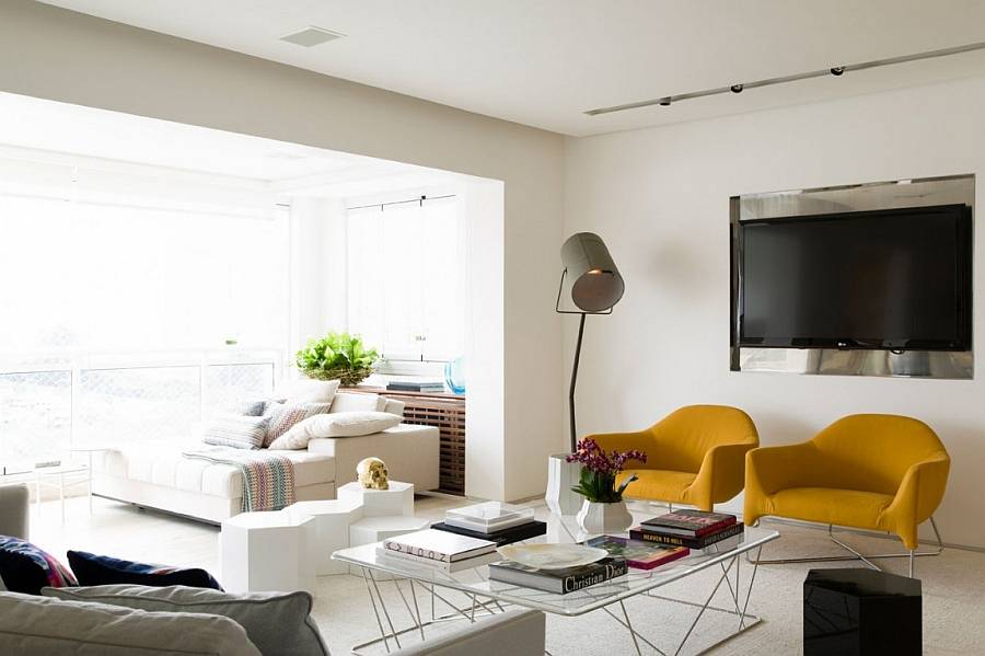 Яркое решение для маленькой гостинойИсточник dizainexpert.ru