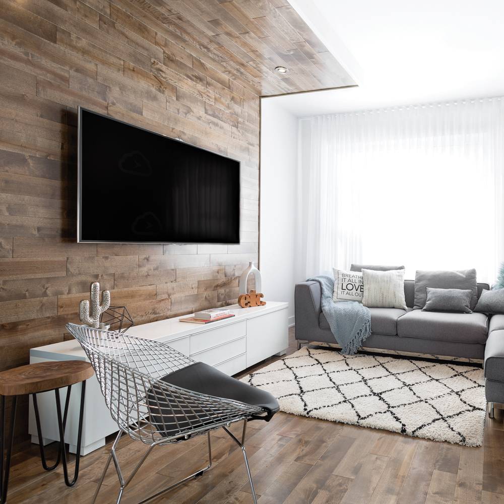 При таком расположении хорошо подойдет большой ковер, который дополнительно контрастирует с целым и сделает интерьер симметричным. Когда хотите, чтобы в гостиной было дерево, никогда не комбинируйте дуб с сосной и ясень с буком. Хорошая идея — грес, внешний вид которого вдохновлен природой. Выбирая это решение, вы можете одновременно наслаждаться прочностью плитки и красотой элегантного камня или фактуры дерева.