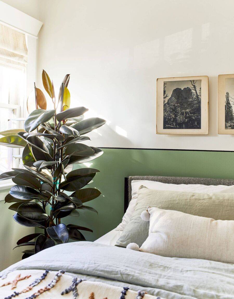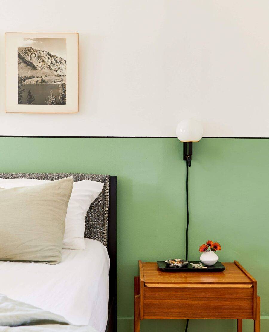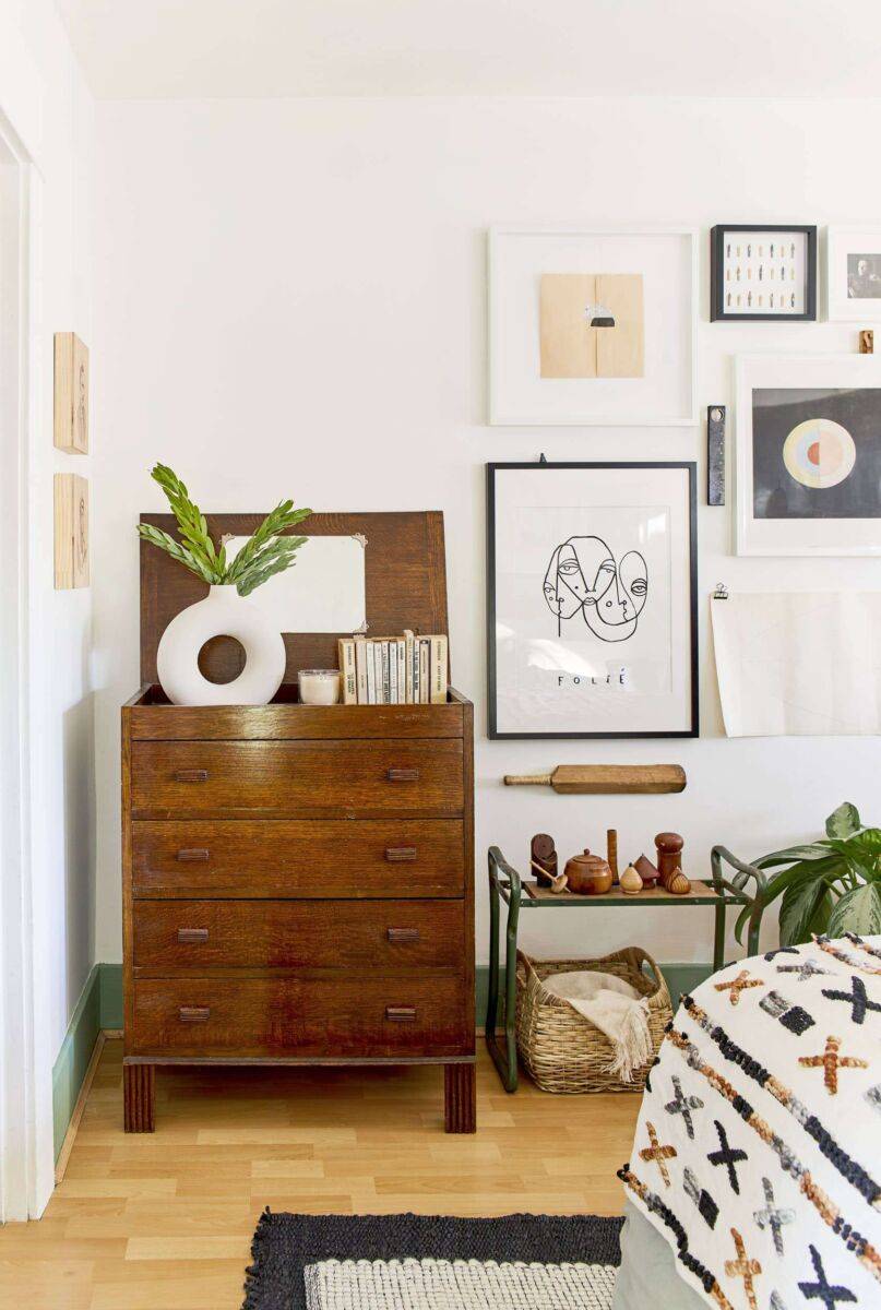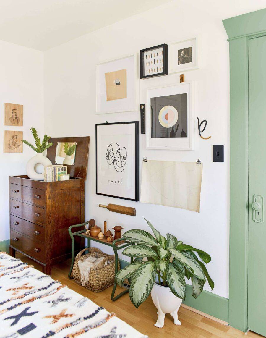 Часть одной из стен можно украсить крупным принтом или ярким декором