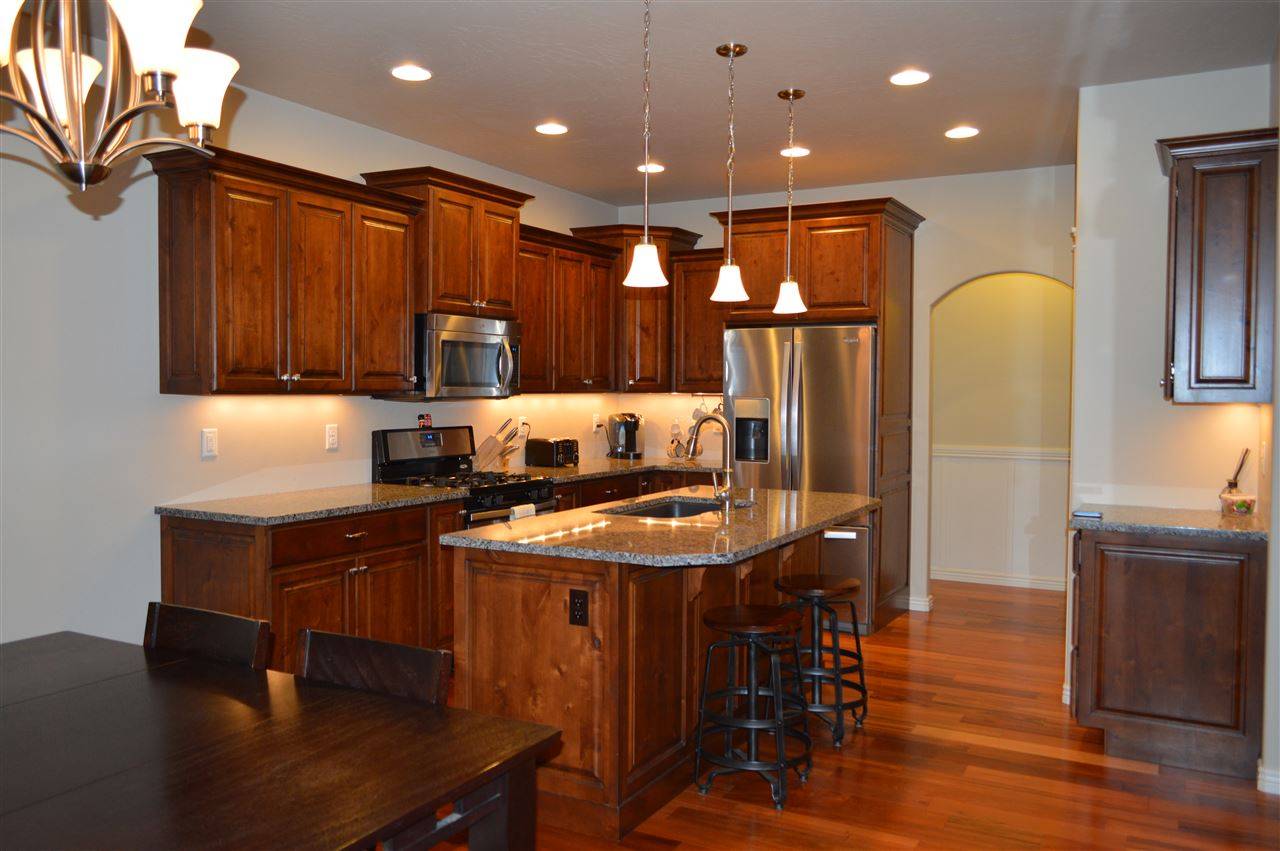 Чтобы помещение для приготовления и приема пищи отлично гармонировало с естественной красотой древесины, лучше выбрать стилистику, где она остается базовой. Этнические разновидности европейского кантри, декор под русский терем (хоромы, палаты), простота избы – на выбор. Русскую печку можно заменить имитацией или очагом в каком-либо другом виде.