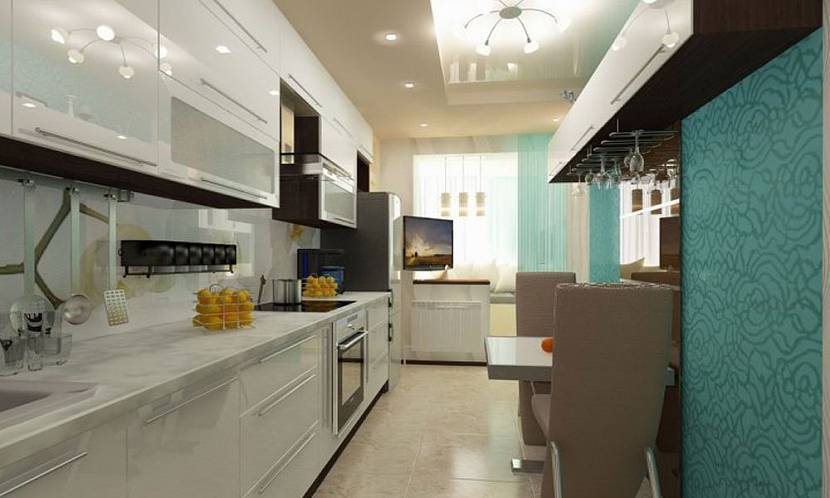 Очень важно не загромождать дизайн узкой кухни избытком мебели
