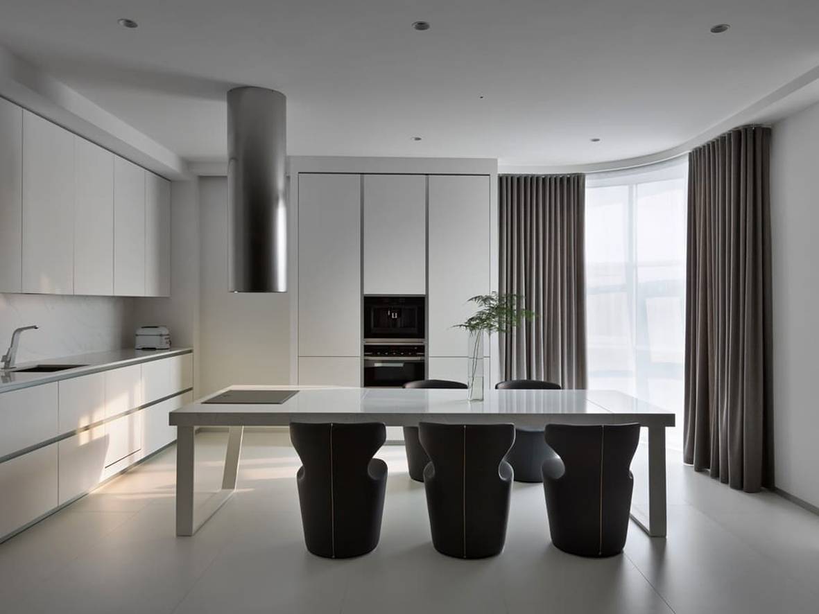 Аскетичные интерьеры в белой холодной цветовой гамме при этом не вызывают отторжения, а дарят чувство легкости и свободы.