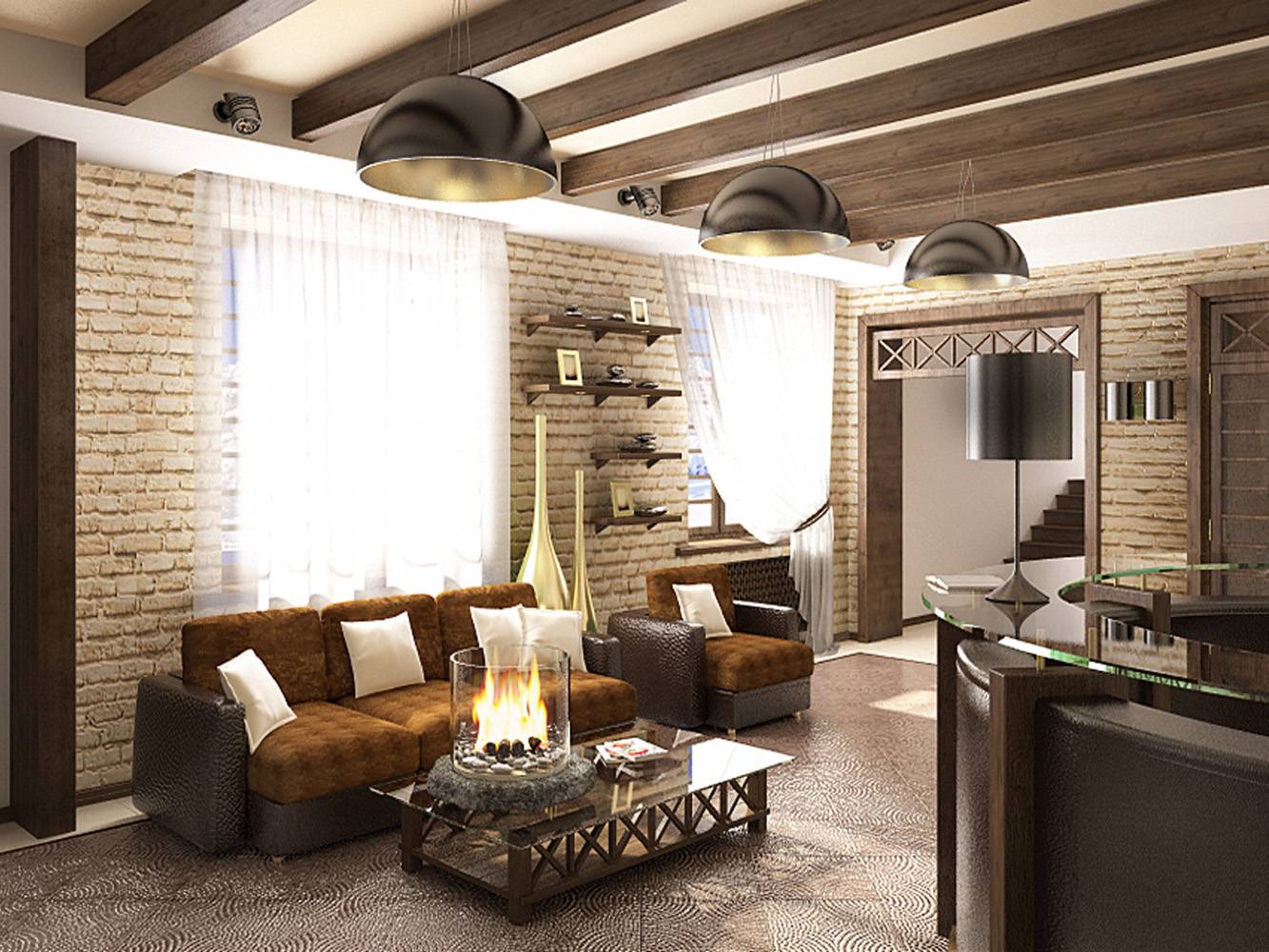 Сегодня в моде естественность, простота и непринужденность. Этого эффекта можно добиться, оставив одну из стен помещения незавершенной, ее можно отделать штукатуркой серого или коричневого цвета.