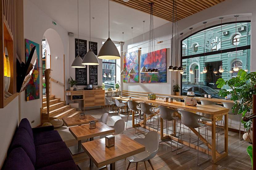 Варианты успешного дизайнерского интерьера кафе последних лет