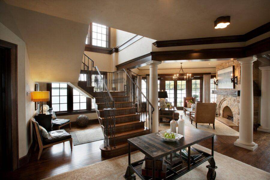 Дизайн прихожей-гостиной в частном доме