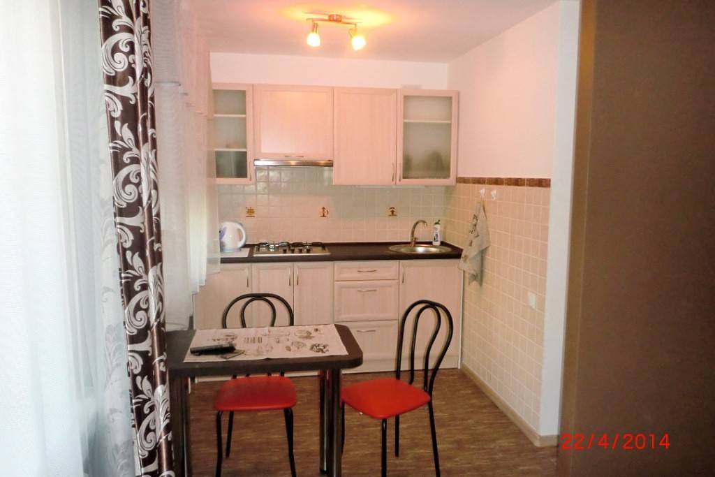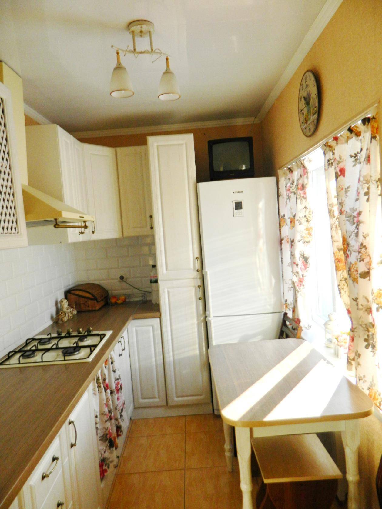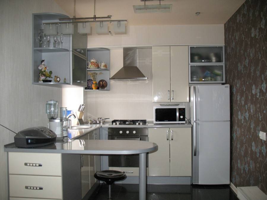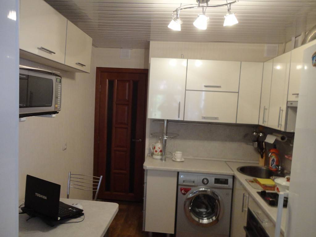 Выбор данного вида обуславливается обычно невозможностью осуществить иные варианты (например, из-за окон и дверей на балкон) и небольшим составом семьи, где нет необходимости иметь большое количество систем хранения и бытовой техники.