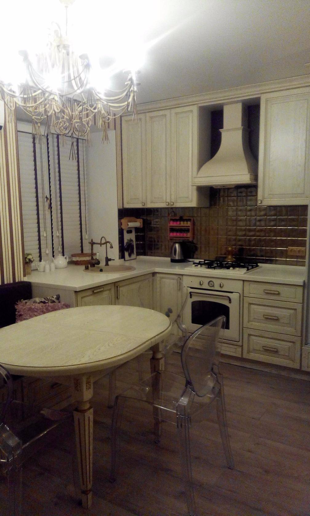 При такой планировке можно оформить кухню в самых разнообразных стилях, как современных, так и исторических. К тому же деление пространства на обеденную и рабочую зоны позволяет разместить на кухне больше полезной бытовой техники.