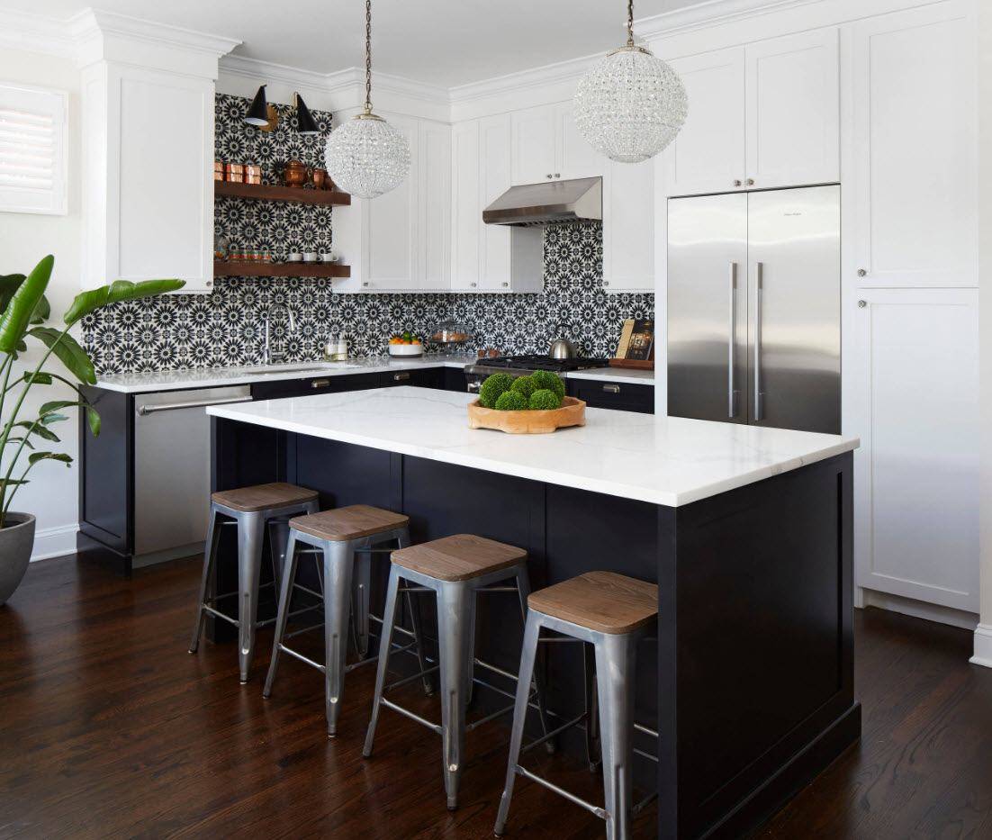 «Остров» — это модно, но… Удобно ли это? По большому счёту, такой элемент мебели хорош на 20 квадратах, а вот на 15 — он просто займёт лишнее место и лишит вас возможности оборудовать большую обеденную зону.