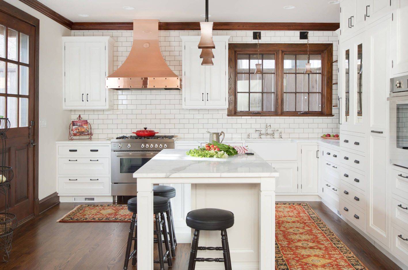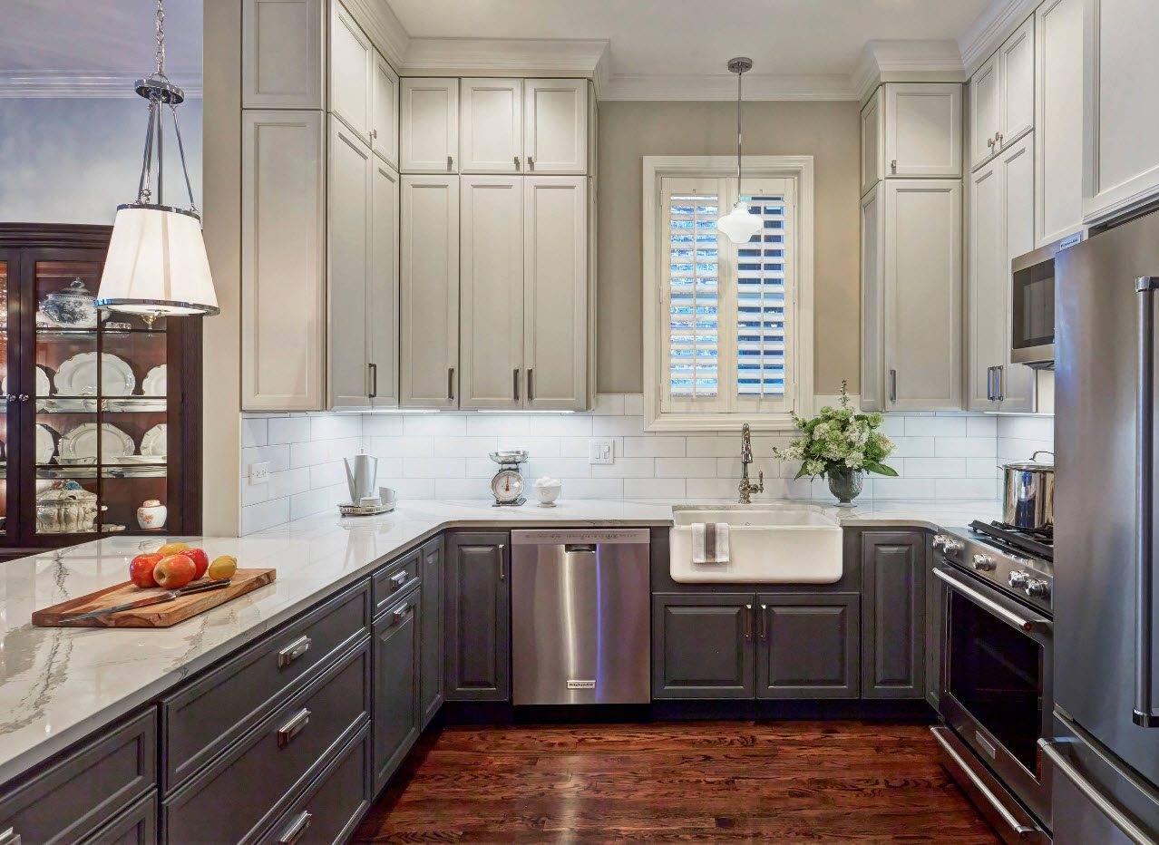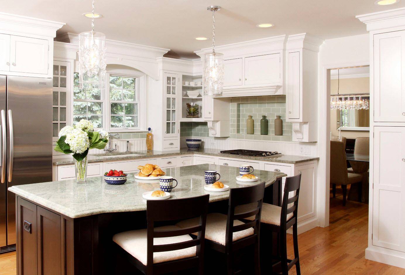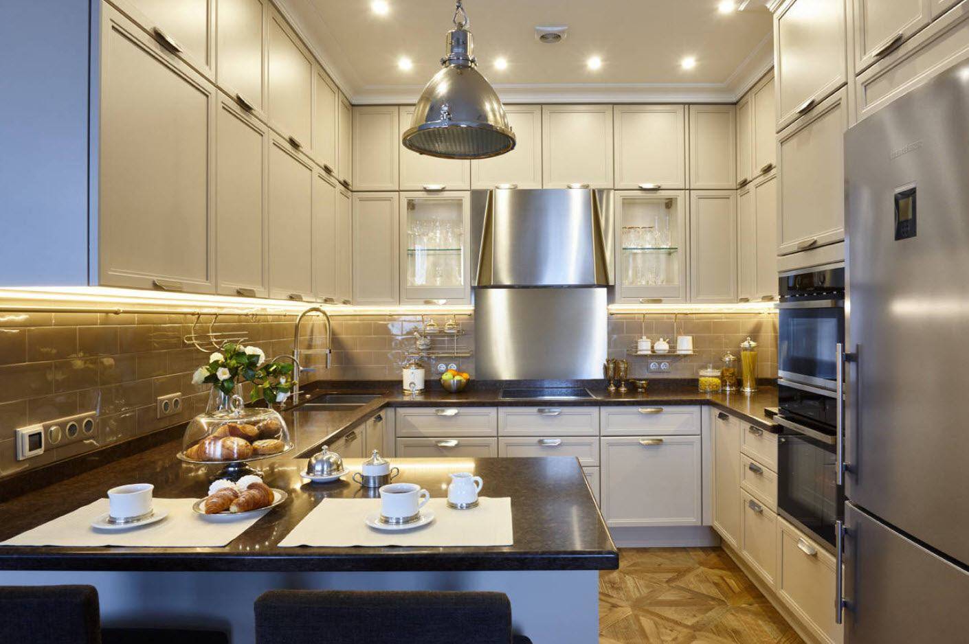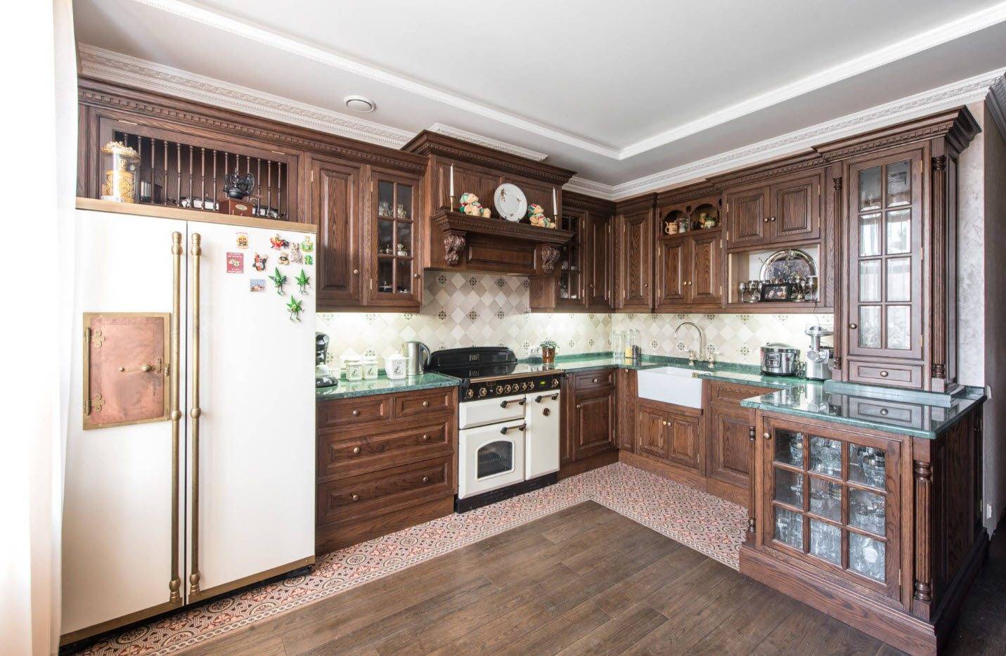 На фото ниже, интересные варианты оформления кухни 15 кв.м в классическом стиле.