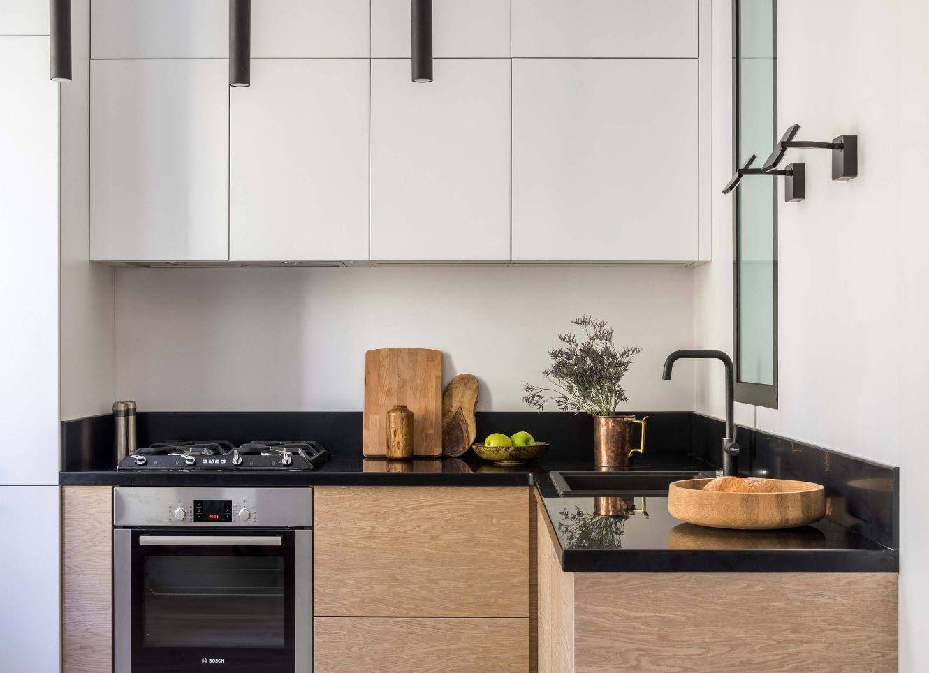 Если вы хотите максимально использовать пространство очень маленькой кухни в квартире, помните, что каждая комната, где мебель находится от пола до потолка, кажется еще более компактной, чем она есть на самом деле. А на маленькой кухне 5 кв. м это особенно заметно. Лучше выбрать шкафы в разных уровнях.