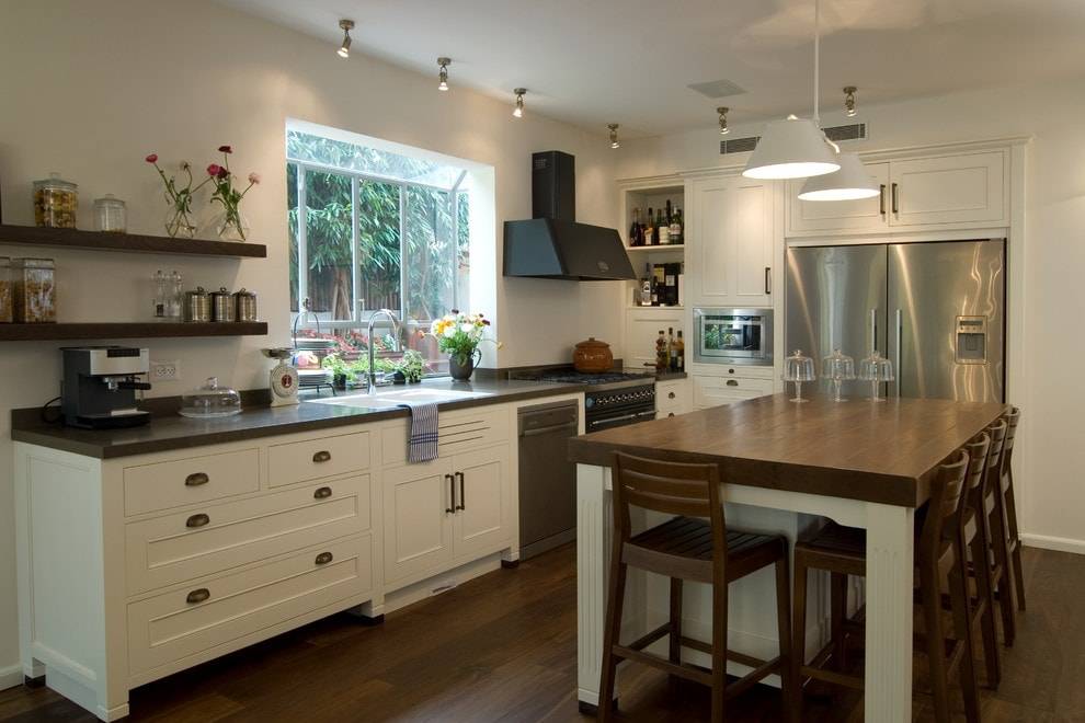 Если столовая зона перенесена в гостиную, установите на кухне барную стойку для быстрых перекусов