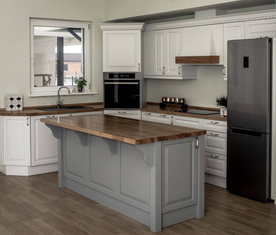 Классика — для любителей роскоши и традиционных решений. Более современный вариант — неоклассика. В любом случае таким кухням присущи симметрия, четкие линии, использование натуральных камня и дерева, наличие элементов классической отделки вроде фресок, керамики или лепнины