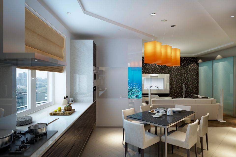 Дизайн кухни-гостиной 20 кв. м: мебель и аксессуары