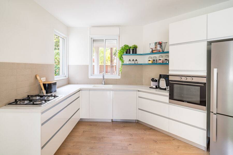Белый дизайн в частном доме на кухне 20 кв. м сделает ее более просторной. В таком интерьере лучше будут смотреться: минимализм и деревенский кантри или французский прованс. Немного яркого декора и универсальный цвет станет отличным фоном для декора.