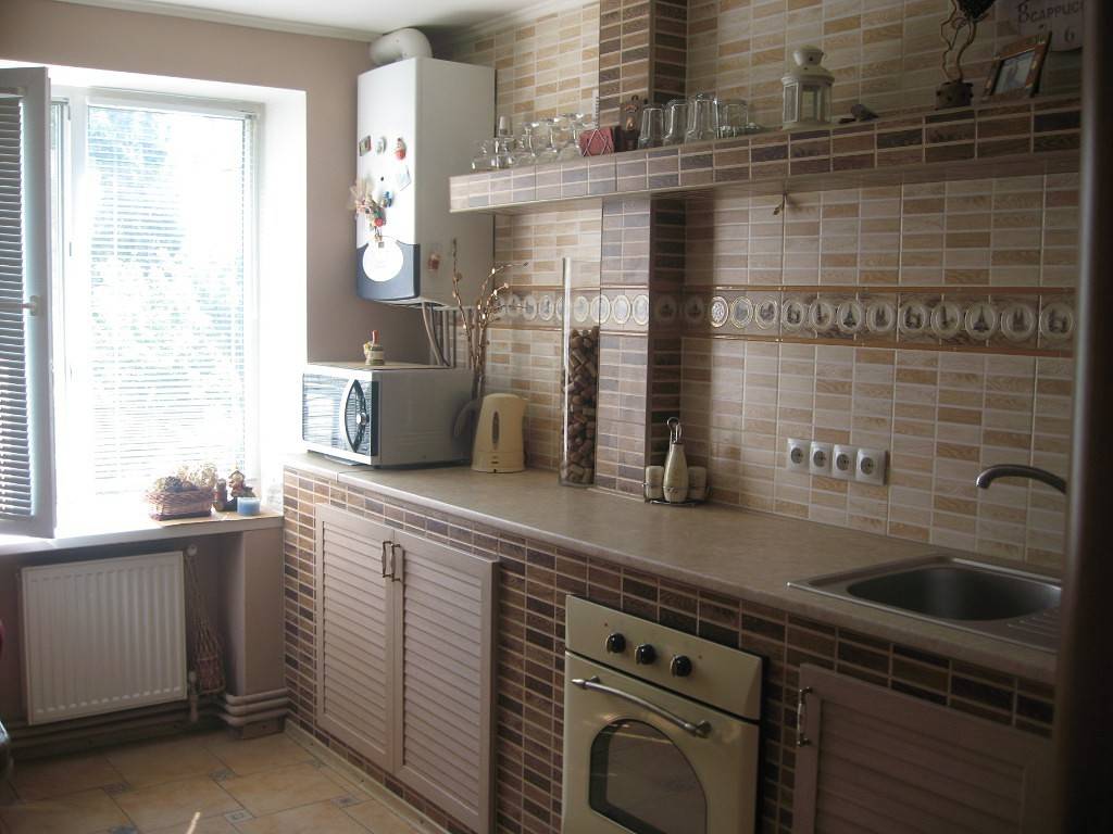 - Дизайн кухни с газовым котлом может быть реализован и силами компании, выполняющей заказ на гарнитур.