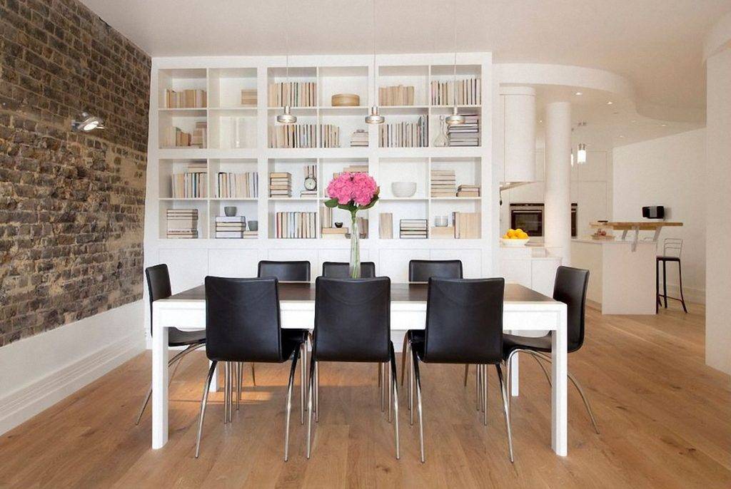 Наличие навесных шкафов – традиционная примета кухонь. Если вы уберете верхние шкафы, то визуально пространство принципиально изменится. Дополните это минимализмом и общими цветовыми решениями, чтобы сделать пространство более гармоничным.