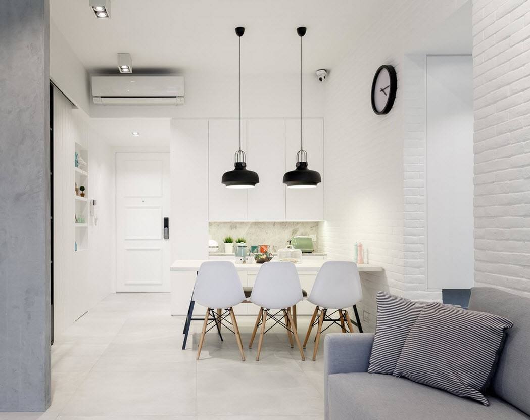 Барная стойка – отличное решение для зонирование маленькой кухни-гостиной или студии, позволяющее убить сразу двух или даже трех зайцев – зонировать, создать дополнительную рабочую поверхность и компактную обеденную зону.