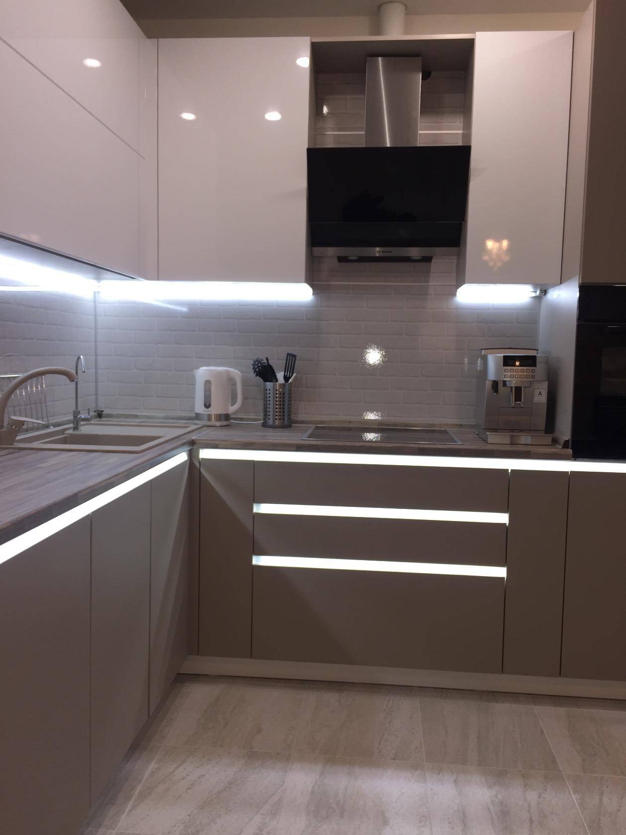 Применяйте практичность по максимуму. Это заключается в следующих мини-рекомендациях: устанавливайте встраиваемый духовой шкаф на уровне рук и глаз; выделите место для выдвижных ящичков в нижней части гарнитура; покупайте вытяжку с наклонным механизмом, это снизит риск получения травмы во время готовки; проектируйте столешницу так, чтобы она не разрывалась мойкой или плитой. На цельной поверхности гораздо удобнее готовить.