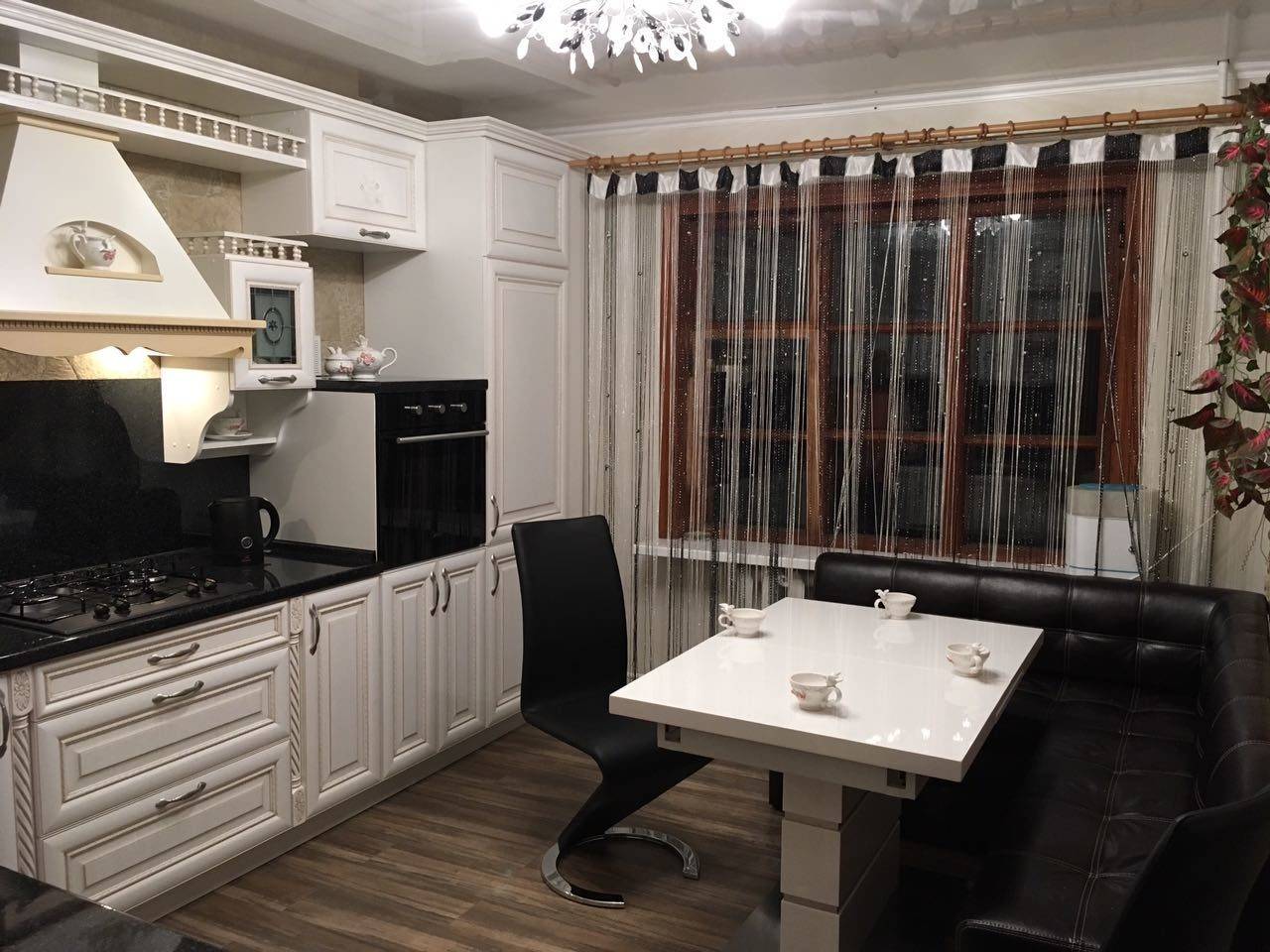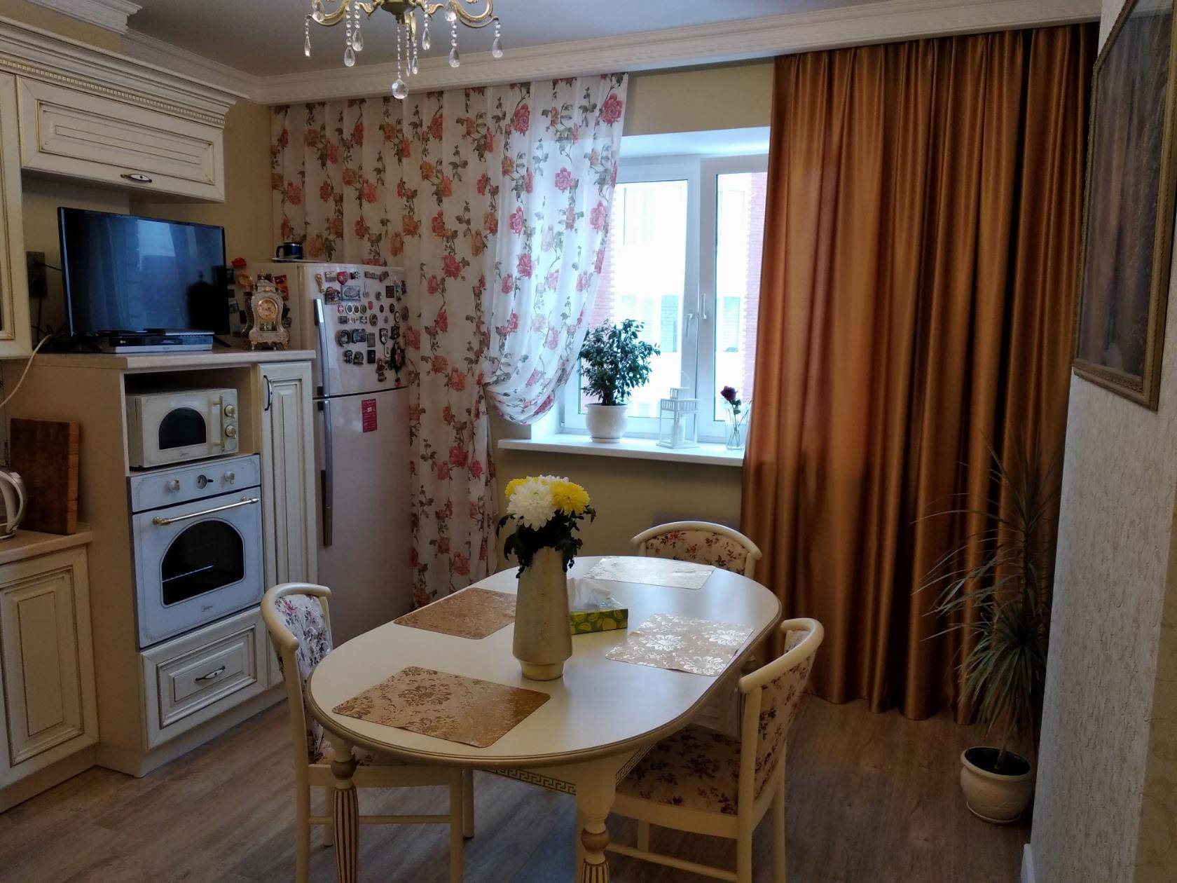 - На окнах в классической кухне обязательно должны быть аккуратные, стильные занавески – никаких жалюзи.