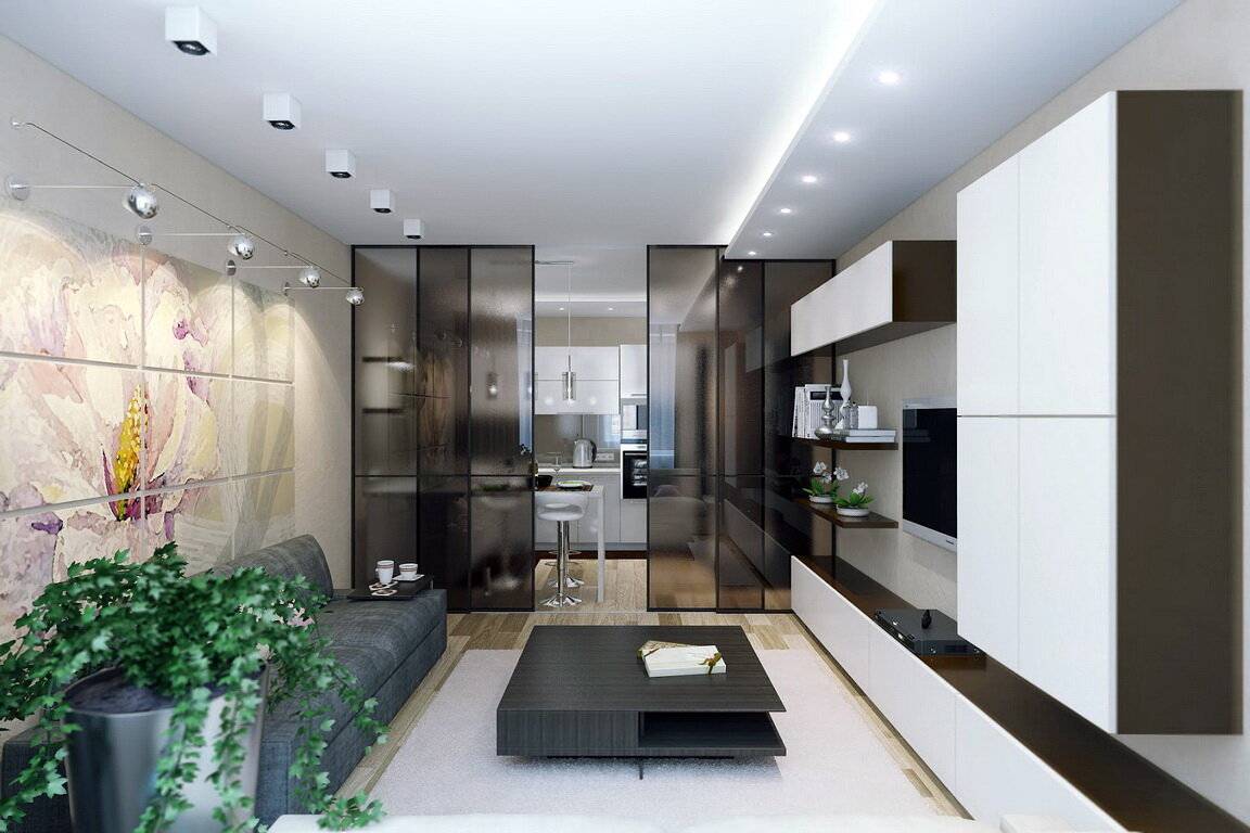 Арочная система подойдет, если решили убрать стенку между кухней и комнатой не до конца. Большой арочный проем позволит поделить помещение на четкие зоны. Перегородки служат для той же цели. Часто это стеклянные двери, дверь-гармошка, перегородки в японском стиле.
