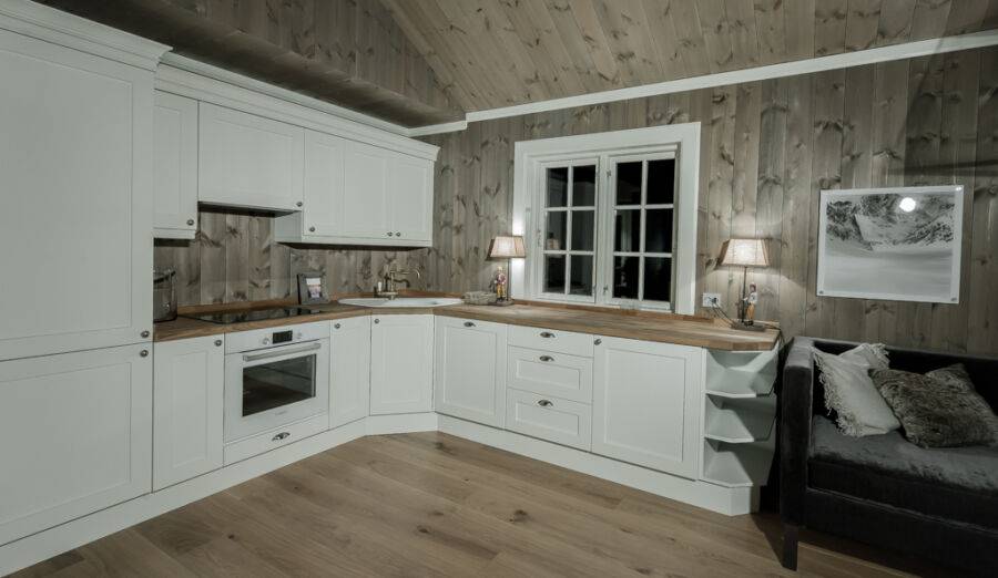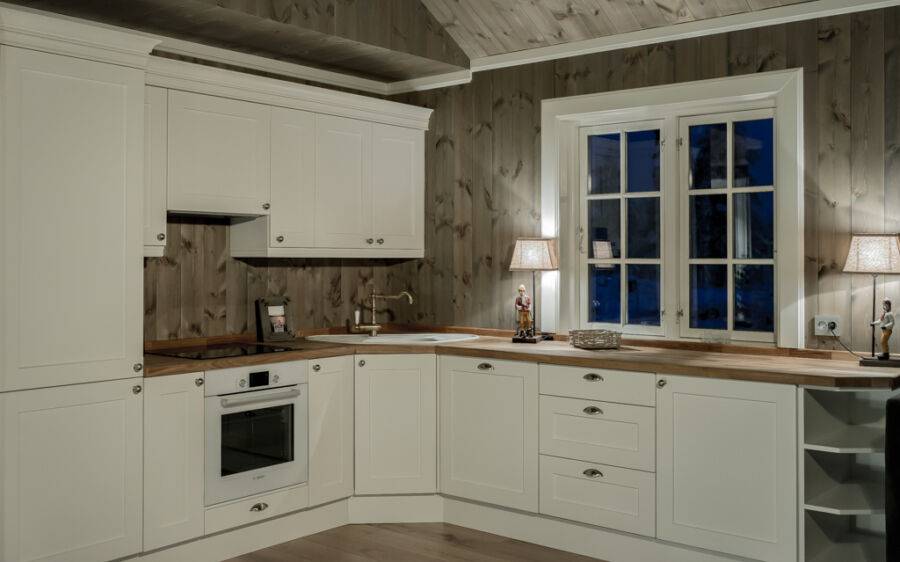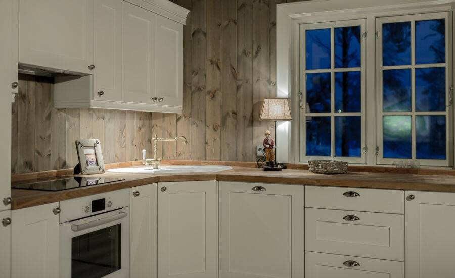 Сканди-дизайн тяготеет к практичности и естественности, отдавая предпочтение натуральным отделочным материалам, особенно дереву. Это направление подходит для обустройства кухни-студии любой формы и метража.