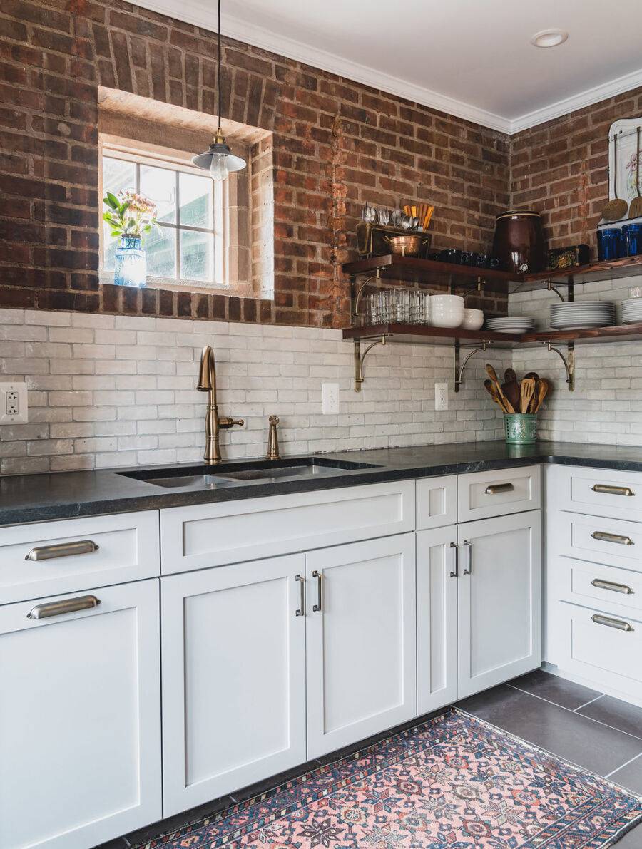 Мебель, оформленная в винтажном стили прекрасно дополнит современную кухню. Возвращаясь к белому цвету и ярким оттенкам хочется заметить, что светлое или белое помещение будет гармонично смотреться с сочными яркими цветами фасада и прочей мебели.