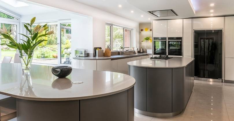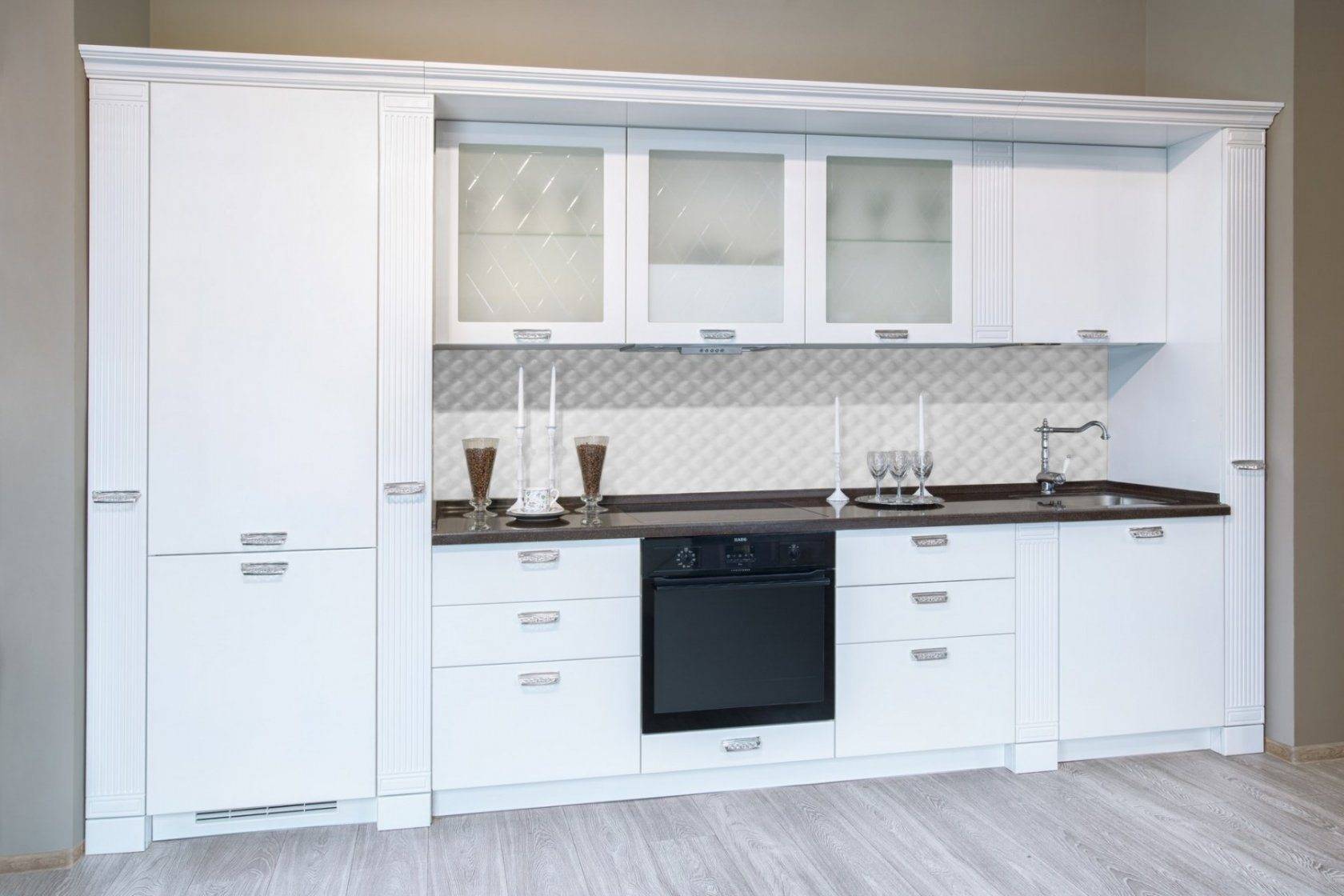 - кухонные гарнитуры с простой геометрией форм, без декоративных изысков. Палитра – белая или серая;