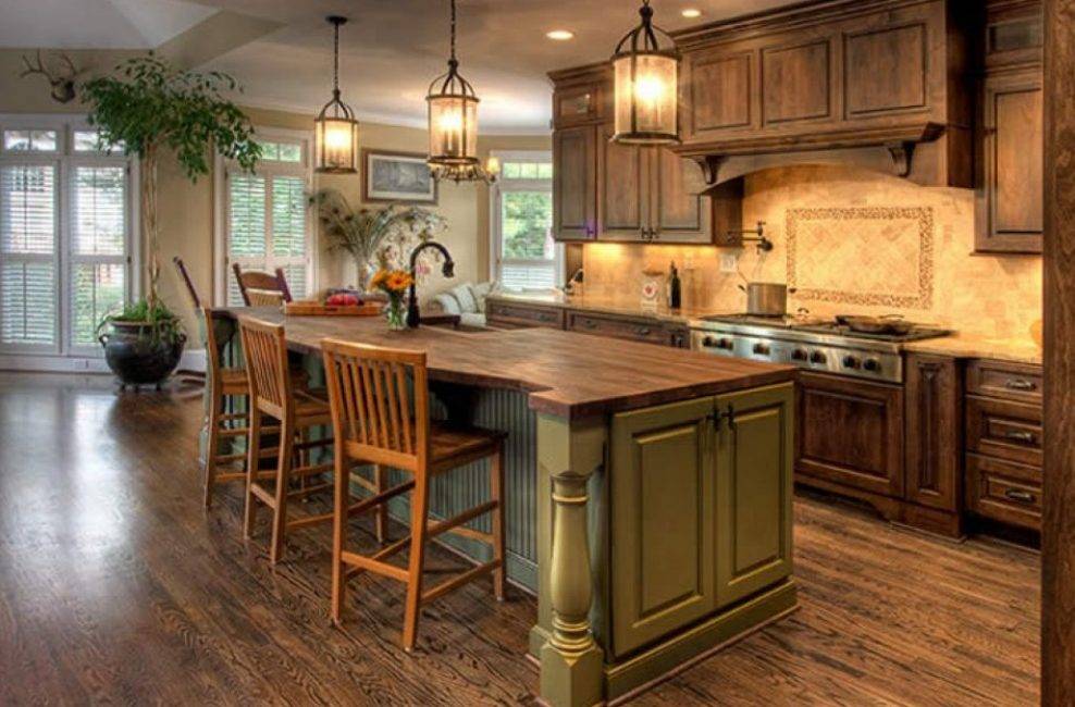 Выполняя отделку кухни в деревенском стиле своими руками, отдайте предпочтение натуральным материалам:камню, металлу, керамике, стеклу, но прежде всего – различным породам дерева