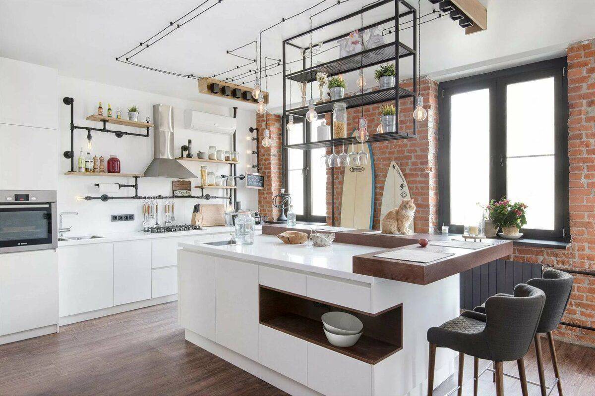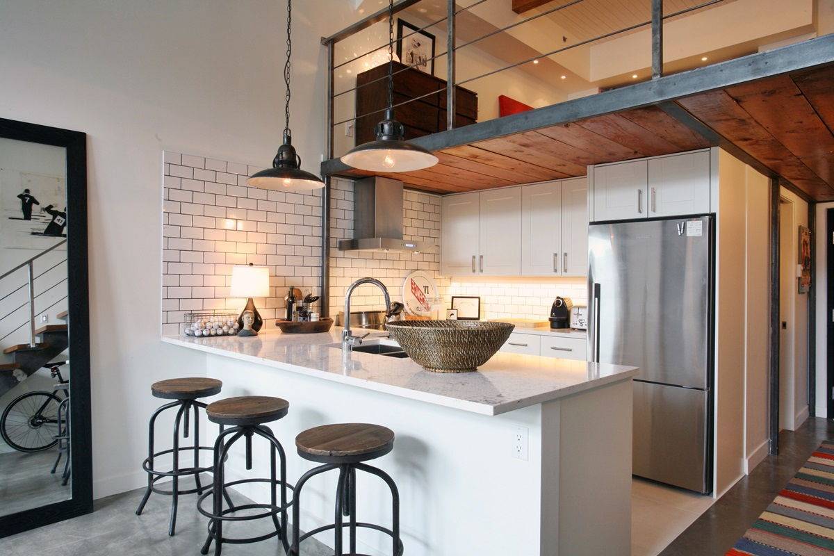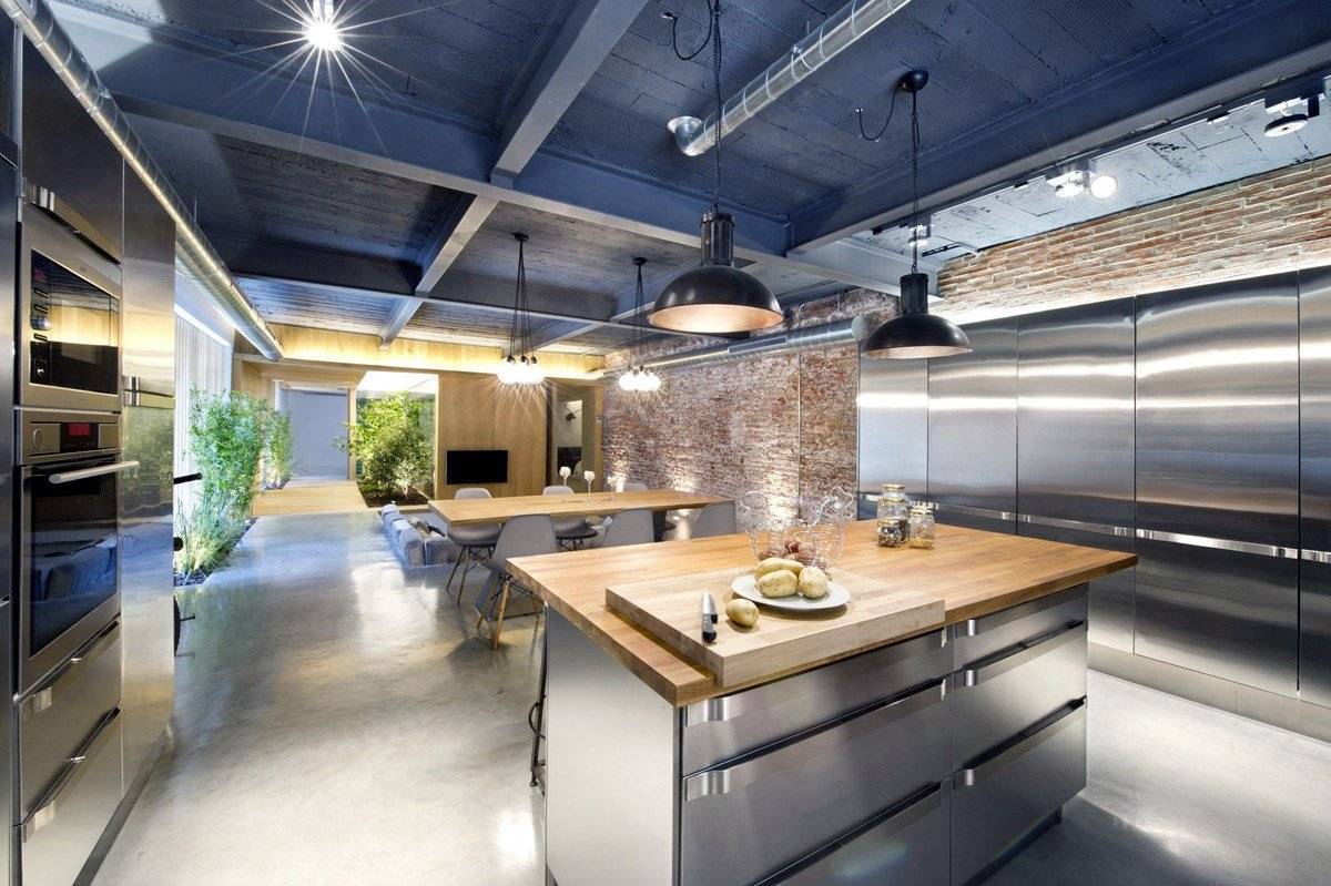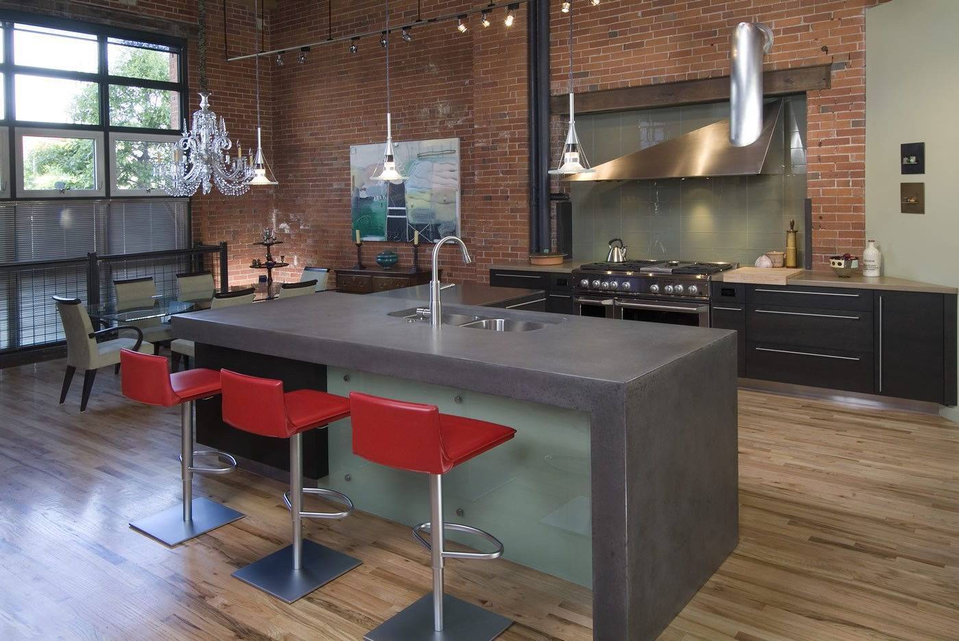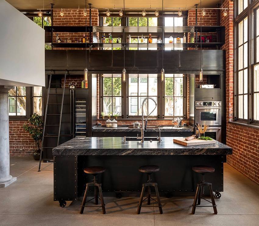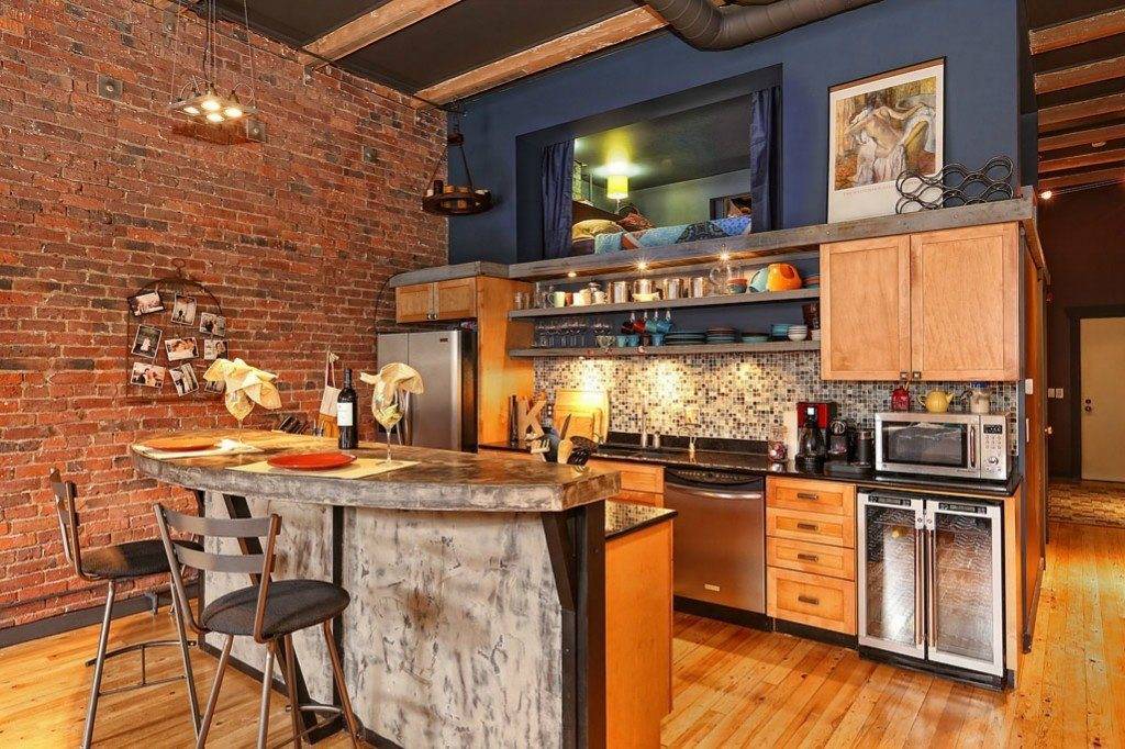 Отделка кухни в стиле лофт подходит для больших и маленьких кухонь.