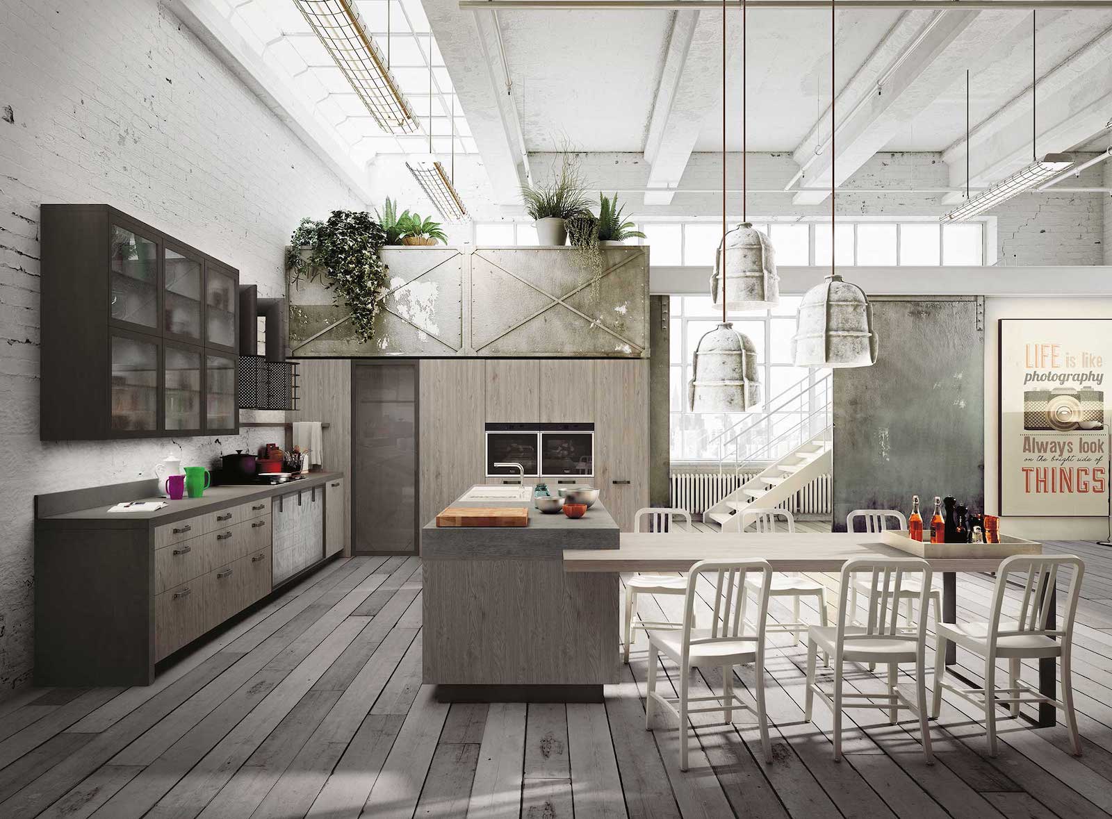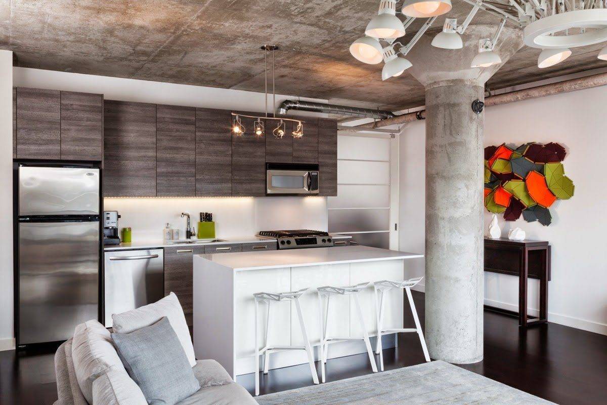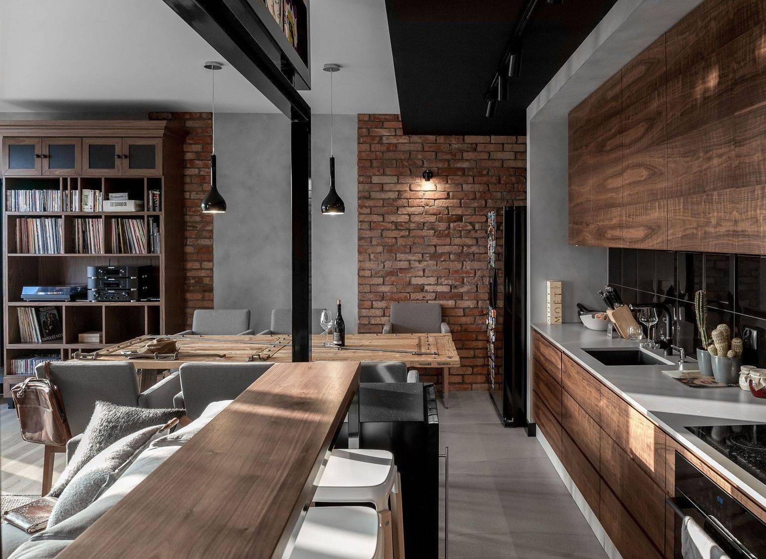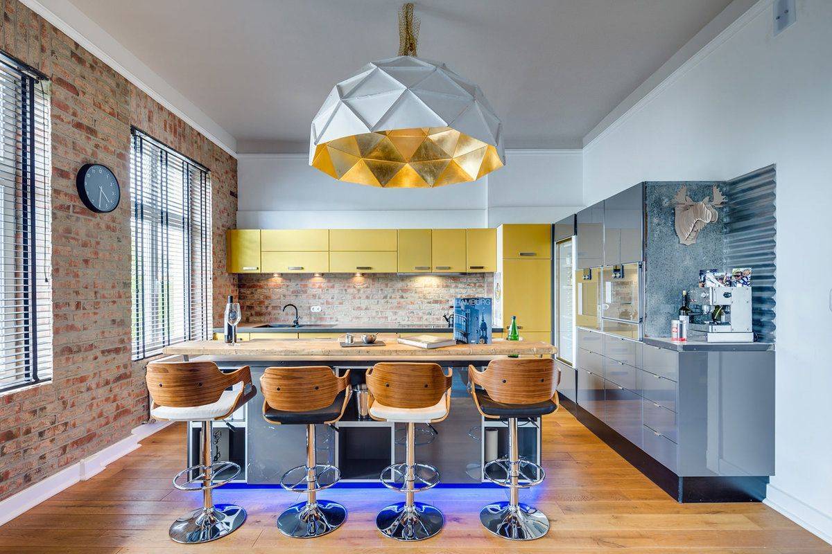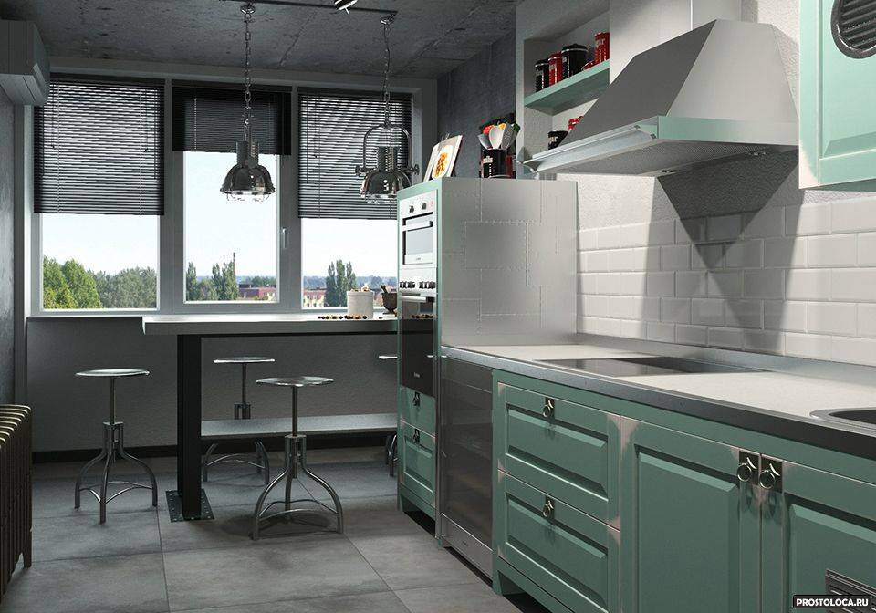 Отделка кухни в стиле лофт подходит для больших и маленьких кухонь.