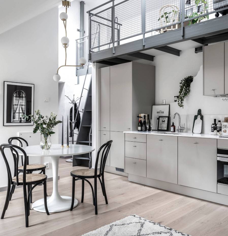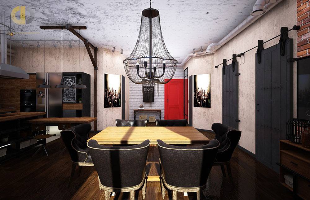 Тема кухни должна всегда идеально сочетаться с другими участками лофт-дизайна, даже если цвет помещений будет отличаться.