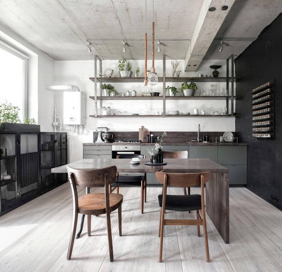 Приметы стиля. Элементы индустриального лофта в интерьере кухни
