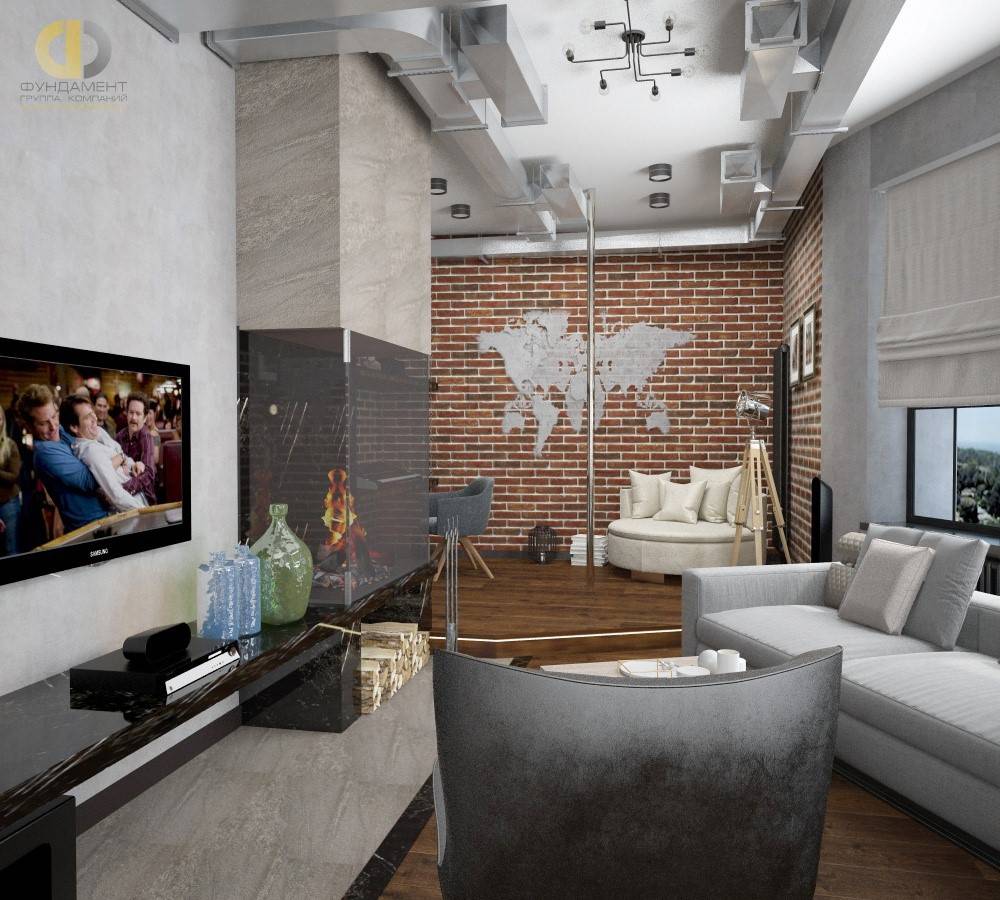 На фото дизайн просторной квартиры-студии в стиле лофт для холостяка.
