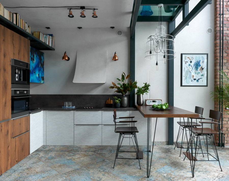 Универсальным материалом для пола кухни в стиле лофт является линолеум