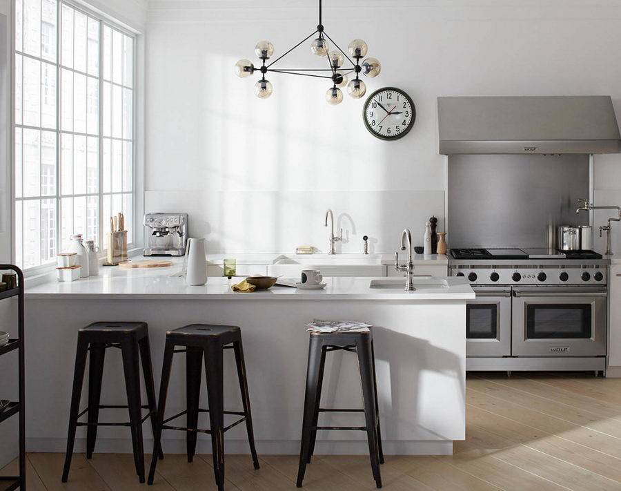 Осветительные приборы важны. Попробуйте установить кухонный остров или включить обеденный стол в середине кухни. Всегда помните, чтобы выбрать правильную длину подвесных светильников – они не должны быть слишком низкими.