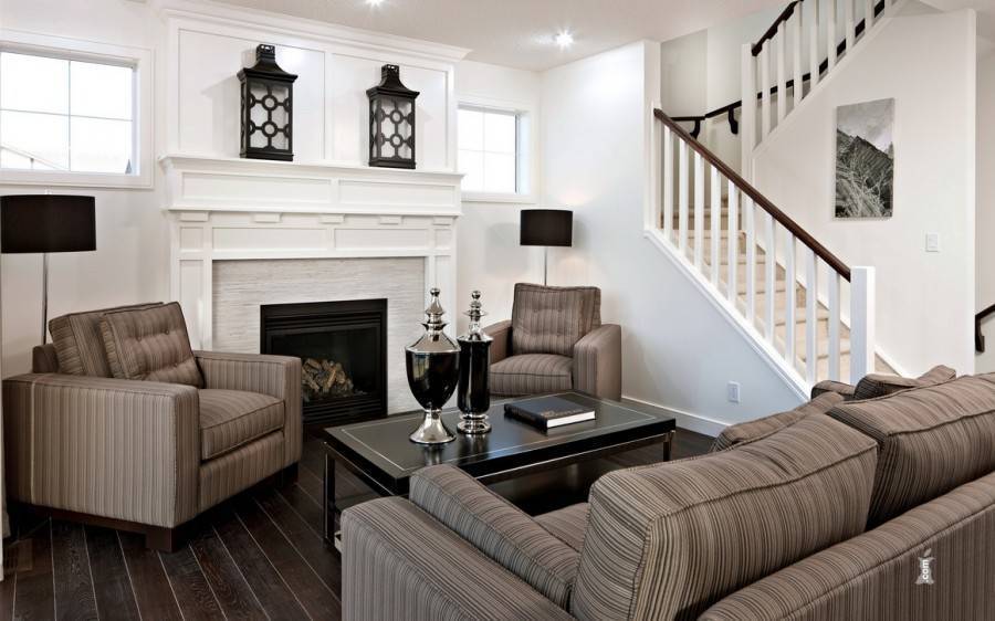 Для таких интерьеров выбирают мебель в классической форме, но при этом она обязательно выглядит благородно и сдержанно. Обстановка в целом может иметь абсолютно нейтральный вид. Иногда приверженность к классике выдает только, например, лепнина на потолке или классический камин в центре комнаты.