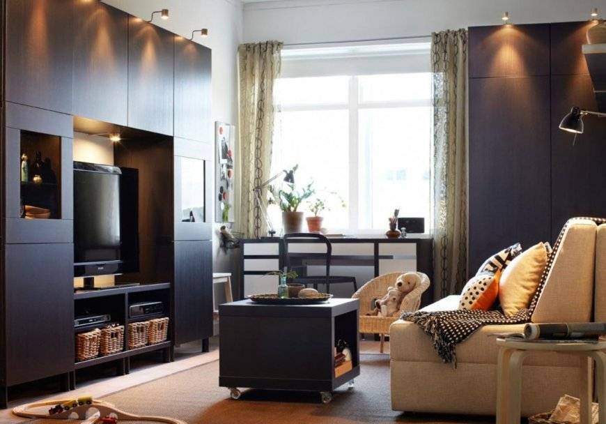 Для ее выполнения стоит обратить внимание на следующие моменты. Для правильной организации пространства в гостиной необходимо центральное ядро – объект, который притягивает к себе наибольшее внимание, например, телевизор