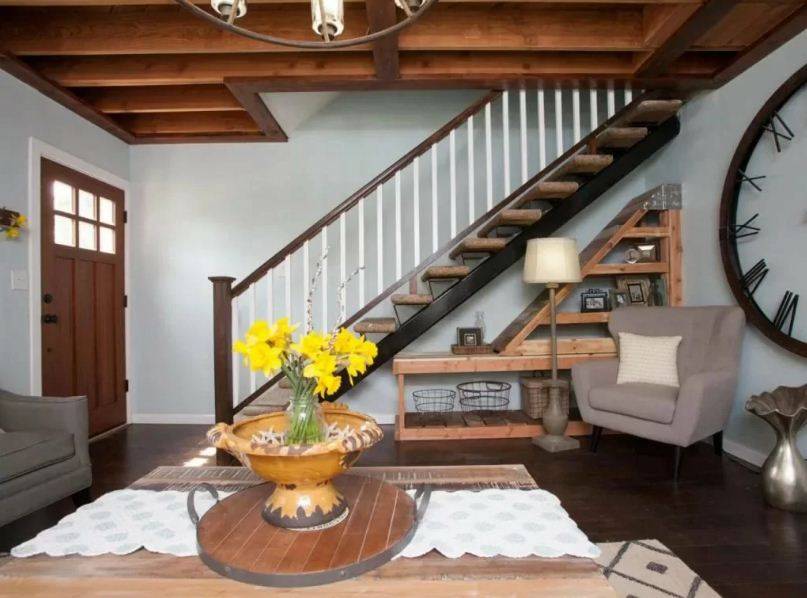 Стены. Классические цвета для стен – бежевый, серый, белый, которые создаются с помощью монотонных обоев или штукатурки. Дизайнеры часто разбавляют белый цвет стен в интерьере дома фактурным материалом, таким как натуральное дерево, камень, кирпич. Кроме использования природных материалов, допускается их имитация.