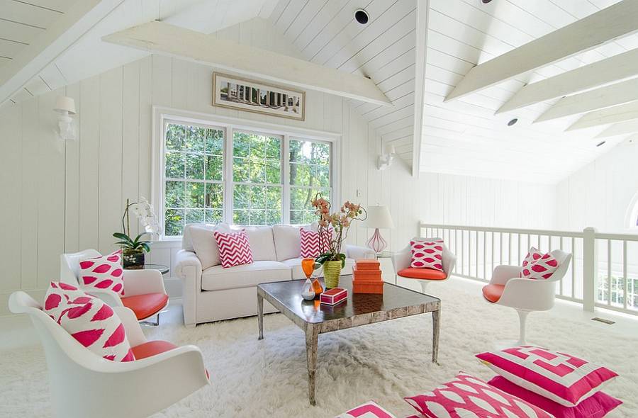 Легкий ярко-розовый ореол в шикарной гостиной.(Дизайн: Кэйтлин Уилсон)