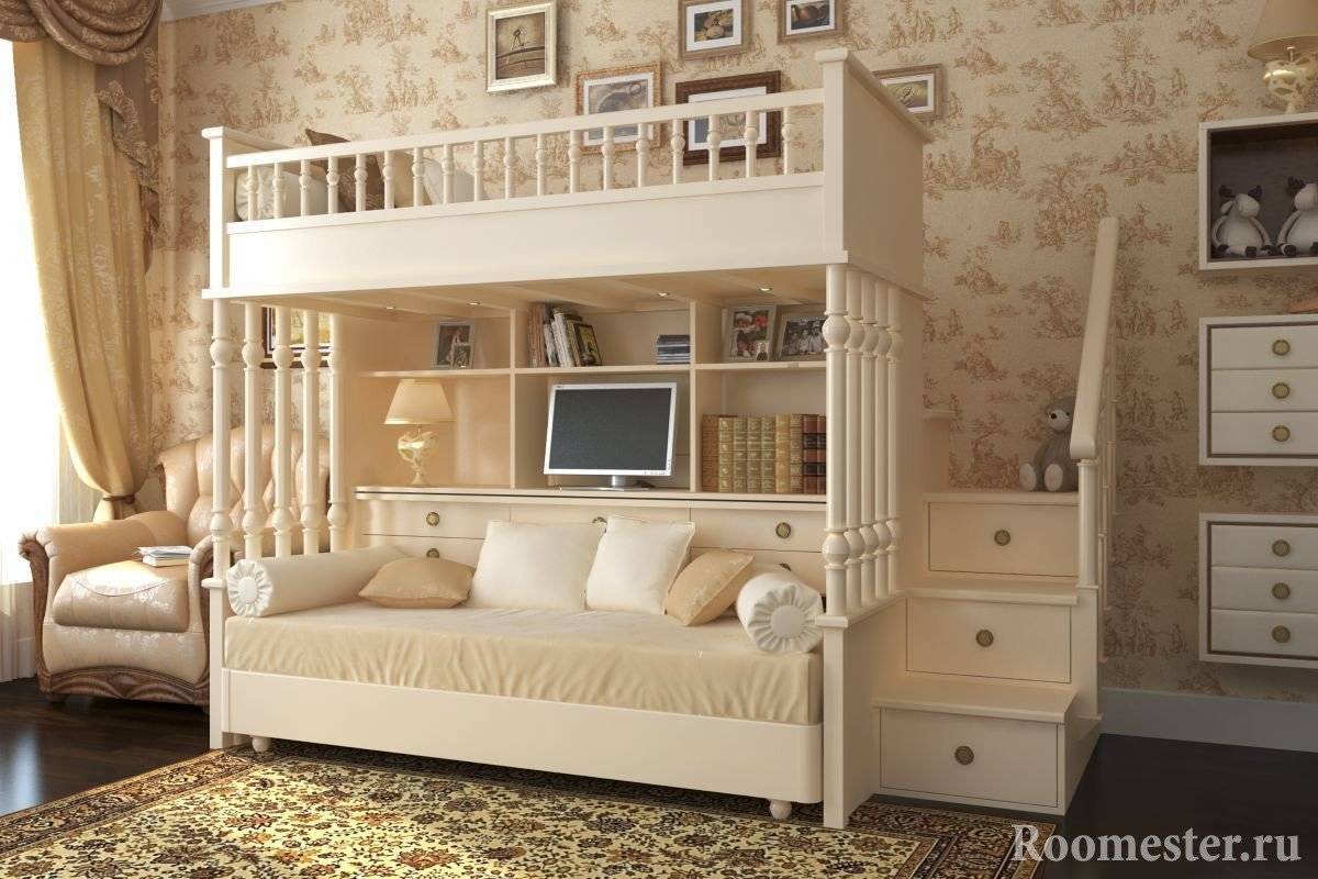 - Кровать, массивных размеров, возможна резка и классический балдахин. Так же обязательна спинка у изголовья;