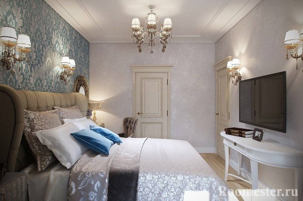 Классический стиль в спальне отличается комфортом, так как в этом интерьере используются различные пуфики, уютные покрывала и пушистые ковры.