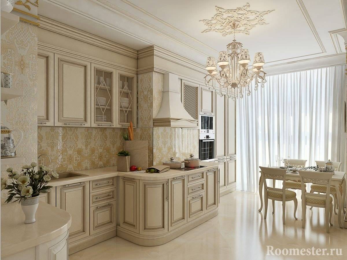 Все светлые оттенки существенно расширяют объём помещения. Конечно, не обойдется классика без умеренного количества позолоты. Недопустимо использование ярких, кислотных расцветок. Даже рисунки на поверхностях — спокойные, неяркие, словно выцветшие.