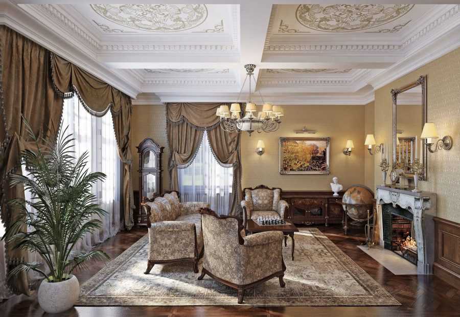Интерьер гостиной в классическом стиле требует соблюдения следующих требований. К ним относят: