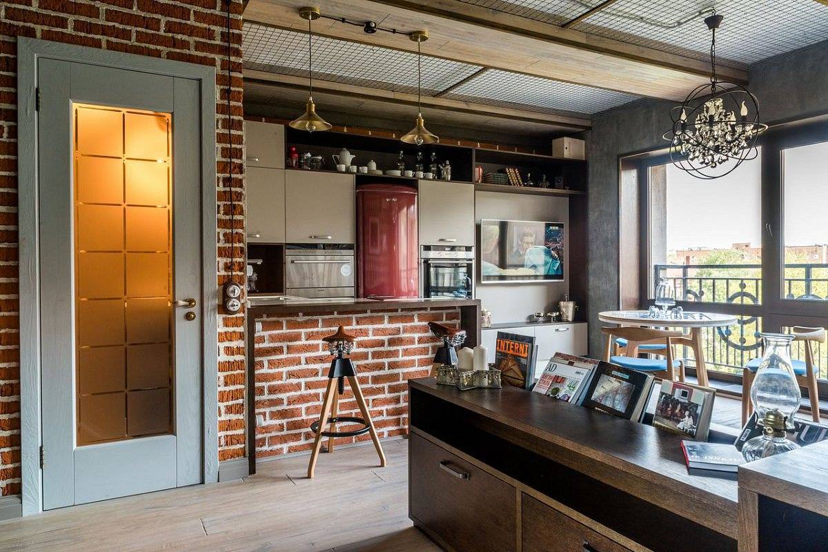 Дизайн маленькой кухни и прихожей в стиле лофт